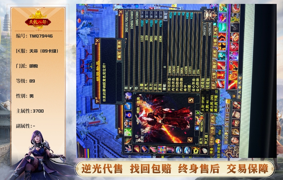 【TMQ79446】 | 明教 | 等级:89 | 主属性:3700 | 男 | 主火攻 | VIP2 | 畅游账号