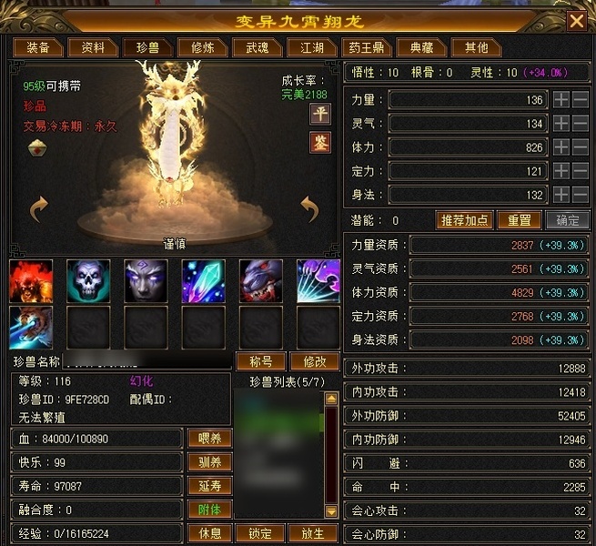 五体双属,带可交易4500资质三十附体(三四级技能),极品双十高变资质宝宝。