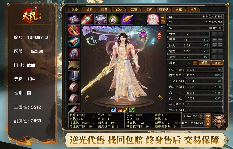 满6三修+顶变忠诚九霄祥龙.5100附体大完美19下线,减抗850.冰抗947.换号出售喜欢来谈。