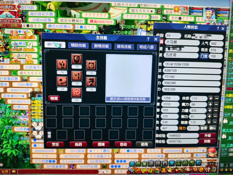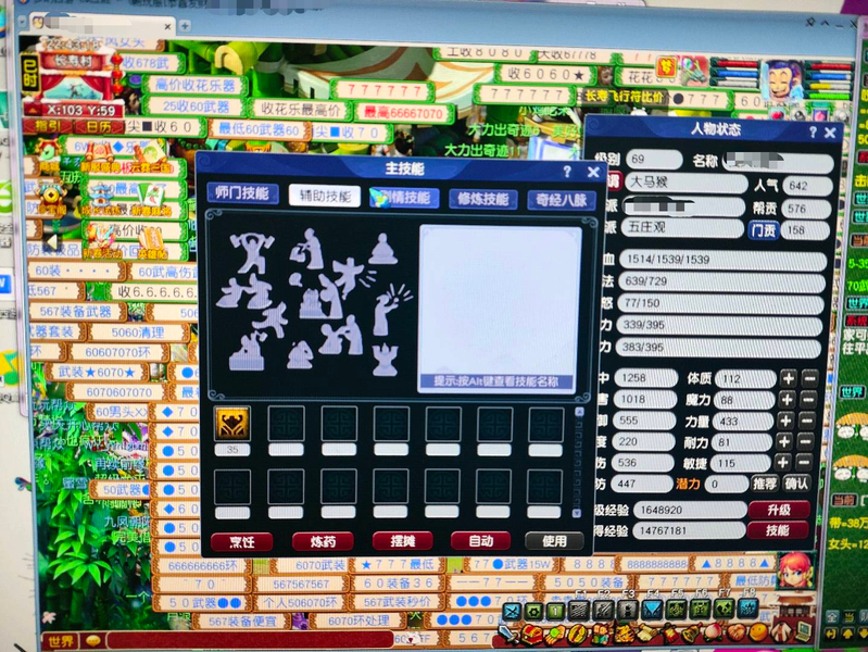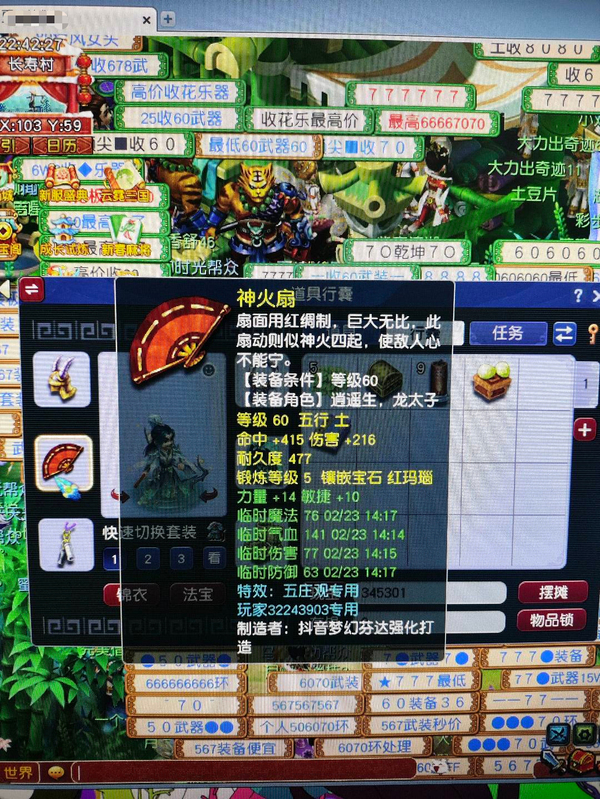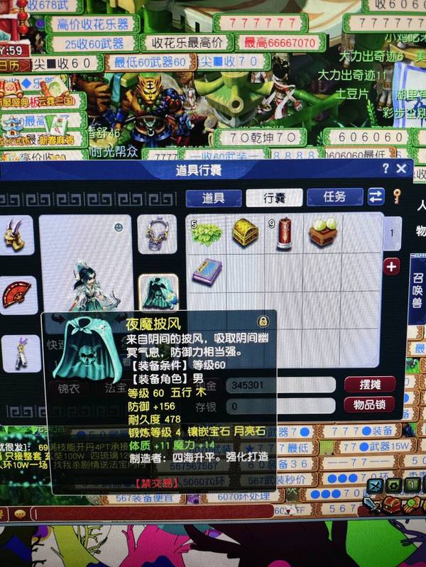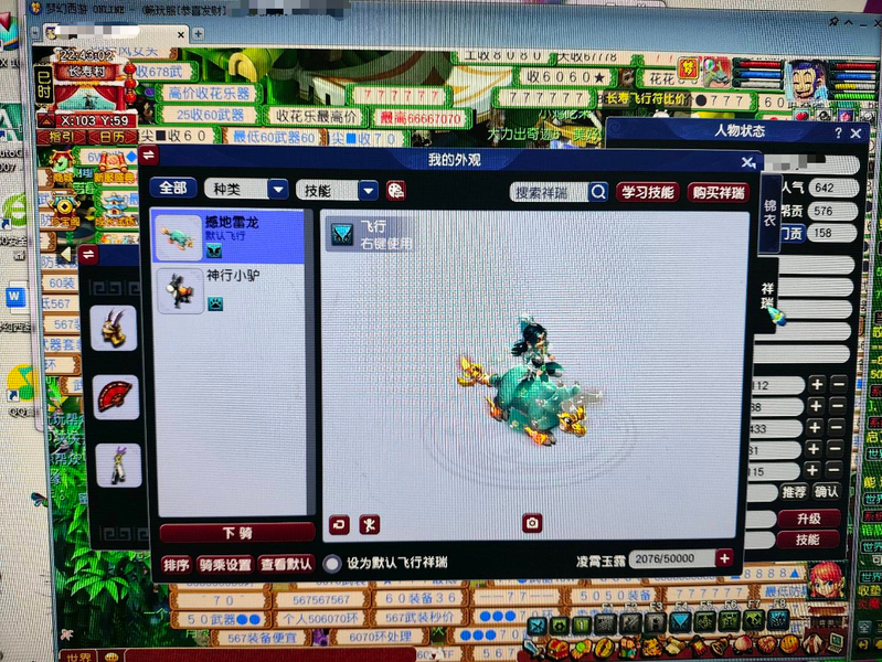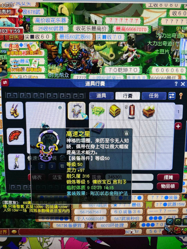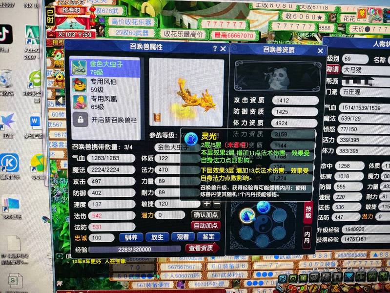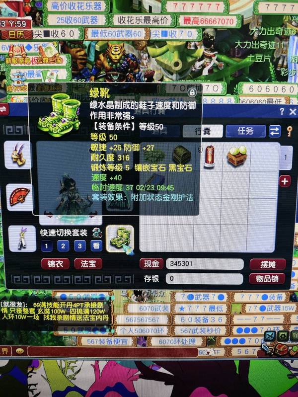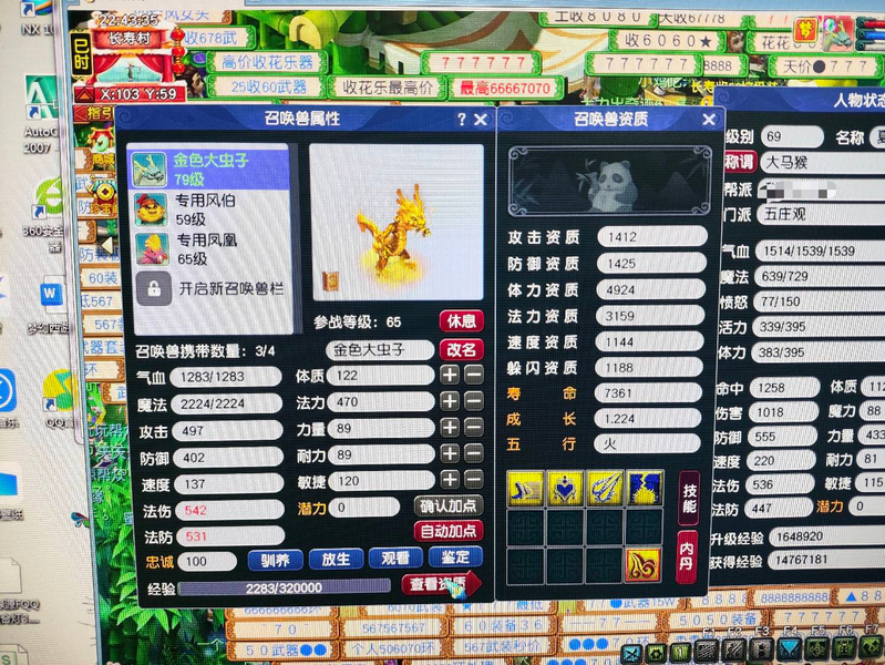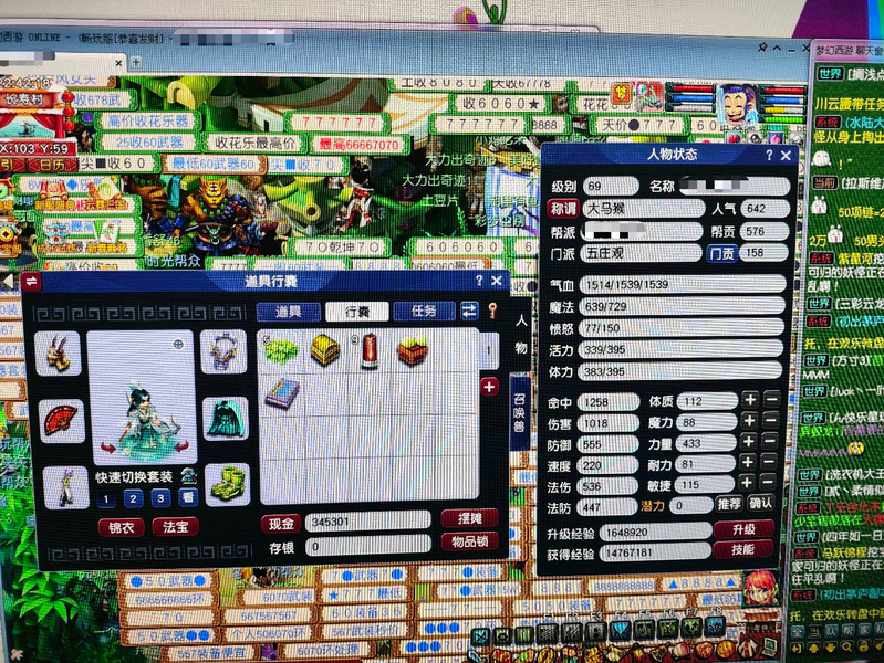 新区恭喜发财,69五庄,540+60+飞行,限量锦衣周瑜,带专用武器 满段金刚套,双爆5段腰带,带任务法宝宝,已洗点+内丹,看上可以谈