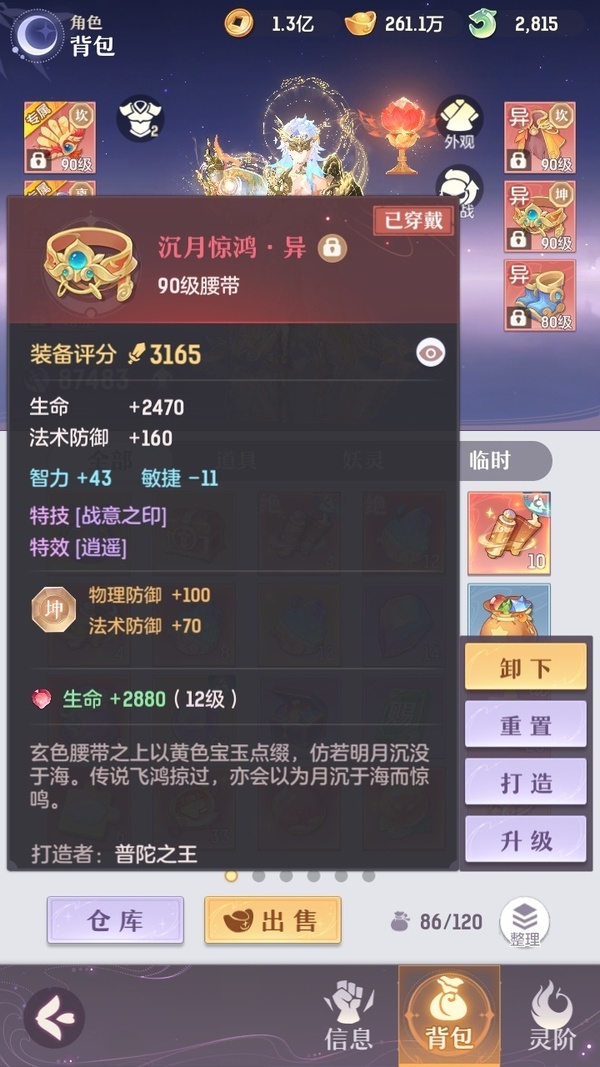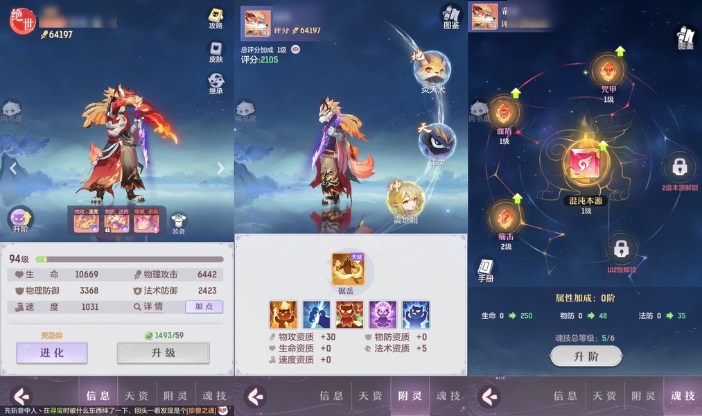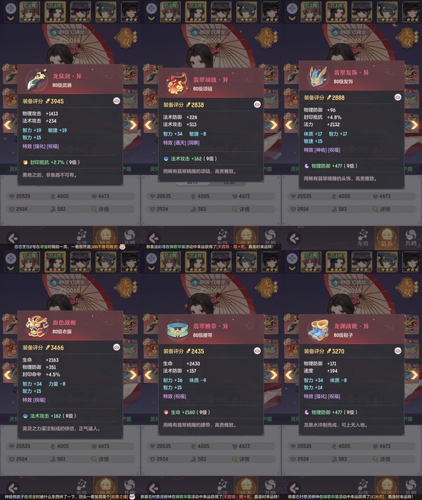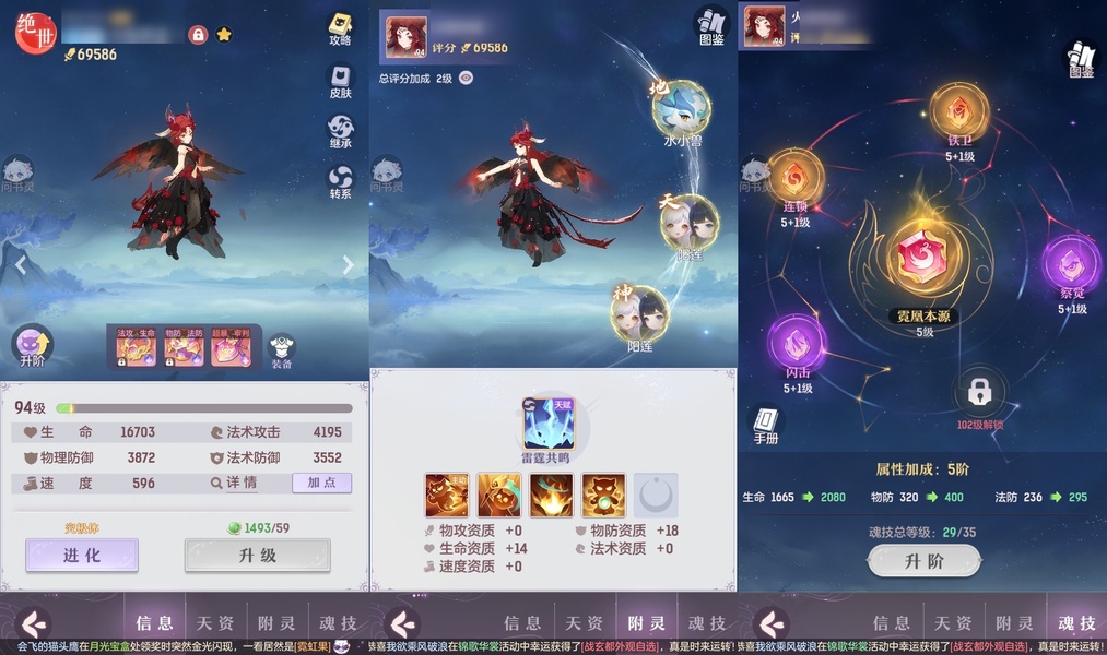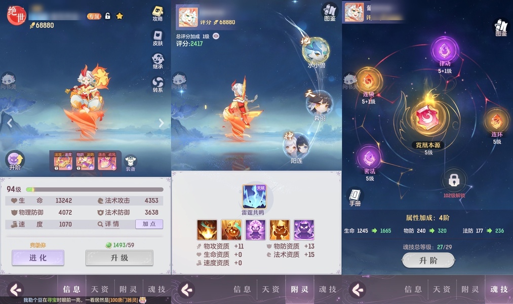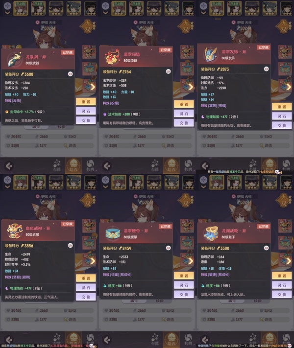 颜值:19260 | 等级:89 | 龙宫 | 神兽数:5 | 法宝颜色统计:10红0蓝 | 总评分:393982 | 角色评分:87483 | 妖灵评分:206189 | 灵师评分:100310 | 倾天三 | 淬金曜蚀,织梦星海,乘波踏浪,山君现,清寒羽冽,灵鸢一梦,墨染尘烟,星河揽月,离火苍龙,九春韶华,火树银花,哈?我当武器?,碎梦语情,炙烤大串,一刹雷鸣 | 蝶恋芳菲,火神·赤曦 | 祥云,蟹有钳,钱多多,灵华引,星昀渡,比翼同舆,万海真君,罗帷七香车,飞起来·壹号,负山海,跃龙门,鸭与云游,喵小萌,飞天笔,飞龙在天,红莲·出尘,兔球,风火乾坤,大荒之主,海月璃梦,贯日神君,焚天火凤,花将军,招财进喵,初弦瑶桂,乘风入梦,狐心入梦,风驰电掣,踏火焚夜,凤蝶·梦浮生 | 【买号找回永久包赔】