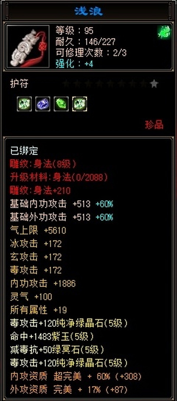 全8雕极限细节5级号,仓库有3颗5级身法石头,2颗5减石头,星宿逍遥随意切换,打人嘎嘎疼