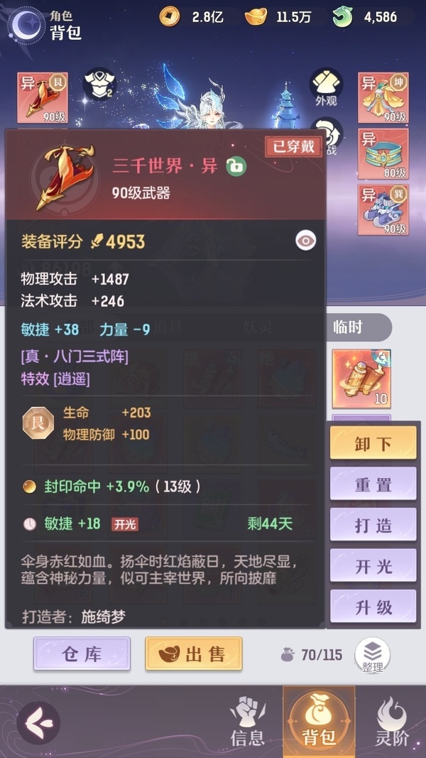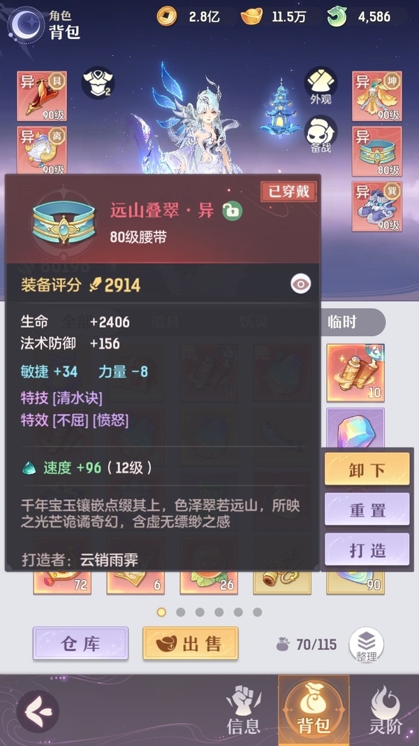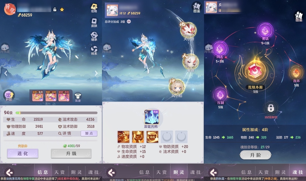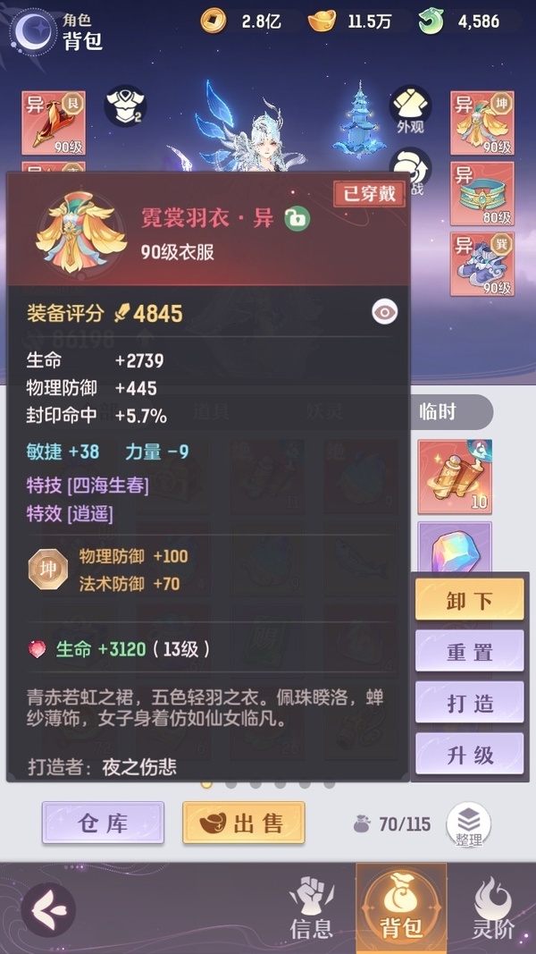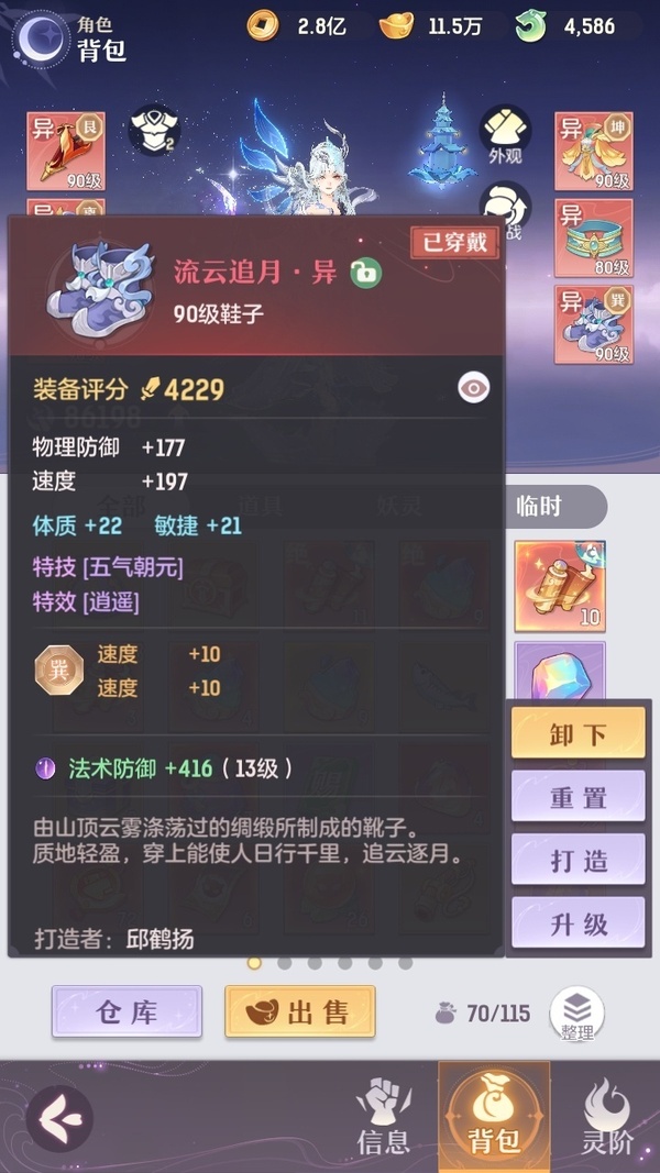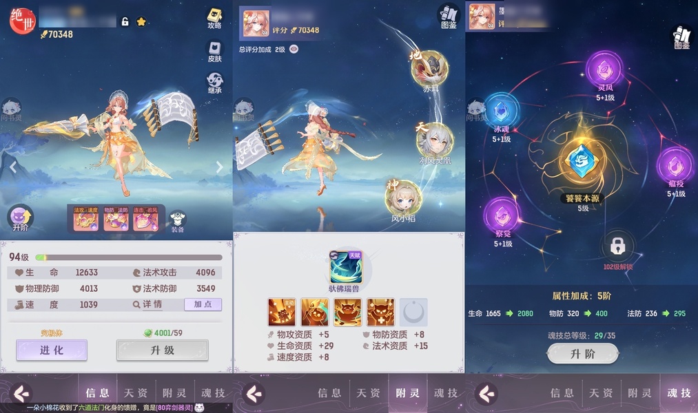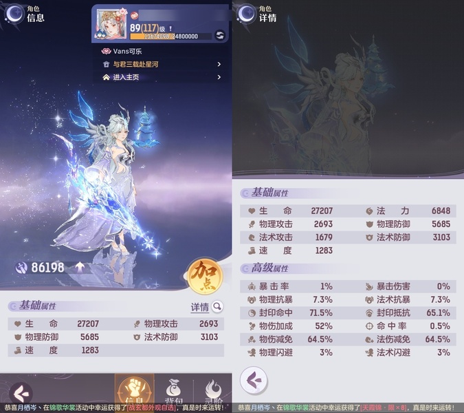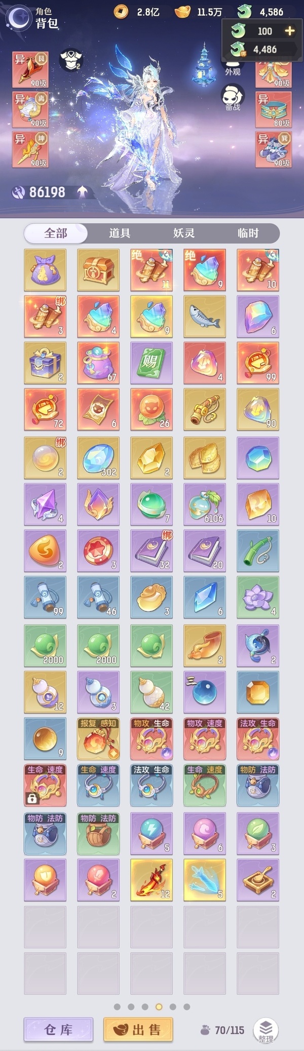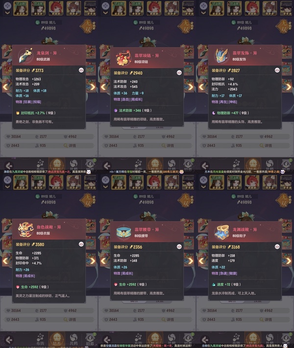 2套装备,还有一套pk装,星火毕业辅助,可封可奶,俩套器灵魂玉,诗悦高级会员,高评分,绝版称号,万颜,全逍遥顶级毕业特技,不屈,愤怒,全2套装备,全金八卦,满基础法宝,全绝品灵宝毕业灵息,全敏高评分魂玉,成就飞毯,多光武坐骑,最新光武坐骑等,宝宝十几个约7万评分,满培养,高评分,吃满丹,满附灵,特别是宝宝装备花了几千万打造好的,仙玉还有很多,可以爽抽奖
