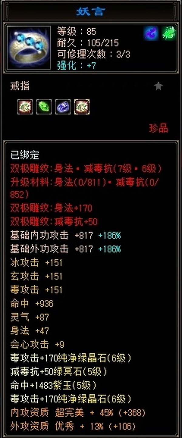 本人一手号,可配合上格子。四修星宿,可转逍遥,主修5000+, 三个副修总共3000加属性都带减抗,天雕属性,天雕抗和减抗已经上满,副属性抗开鼎都在400左右