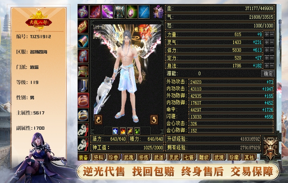 【TJZ51912】 | 逍遥 | 等级:119 | 主属性:5617 | 副属性:1700 | 男 | 主火攻 | VIP3 | qq账号