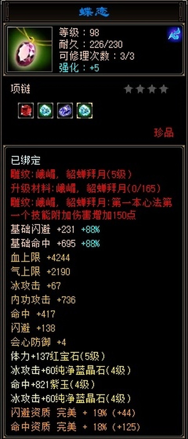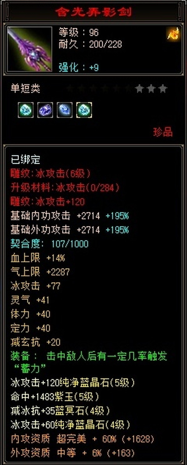 【TZY03186】 | 峨嵋 | 等级:99 | 主属性:2660 | 副属性:1346 | 男 | 主冰攻