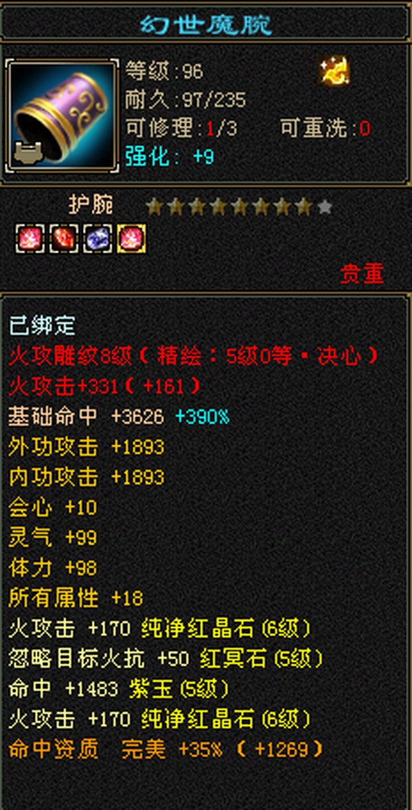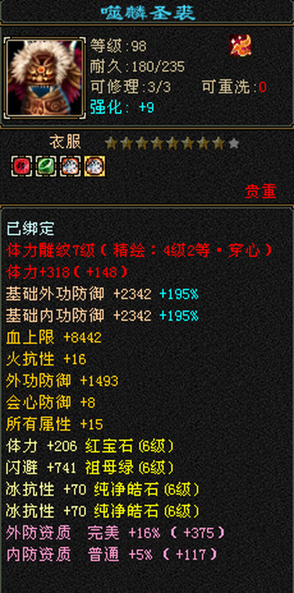 激情区最便宜满六!裸属7000冰抗800,六体六属性六抗,新雕文攻击全5!三把幻视武器