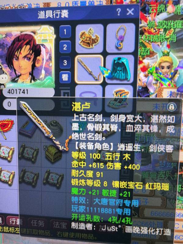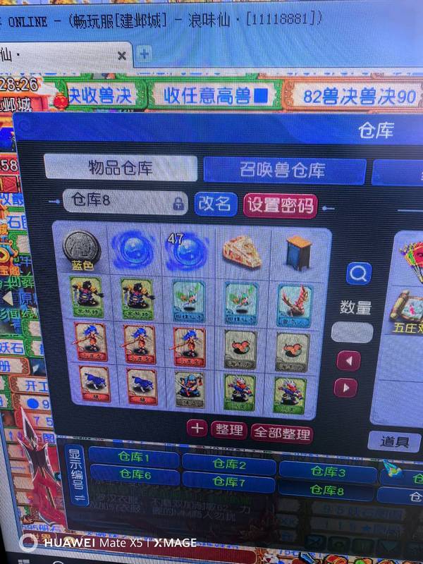 109满修,四修接近满,高宠修,大唐,三行囊,带专用高伤武器,头盔鞋子,夜罗刹项链,法宝齐全满层,好久没玩了,仓库装备都没清,绿通刚续,捡漏来详细看图