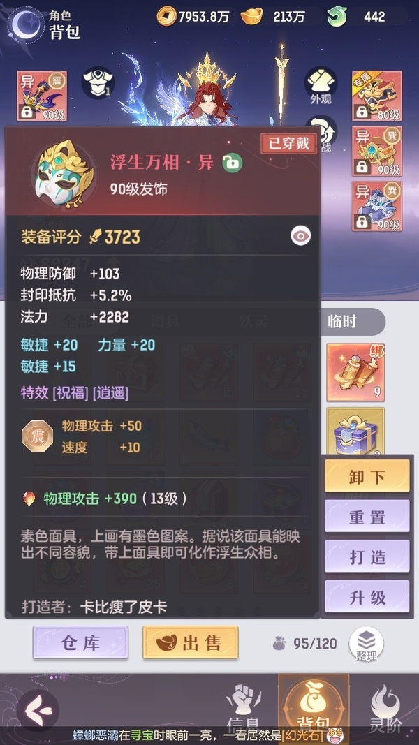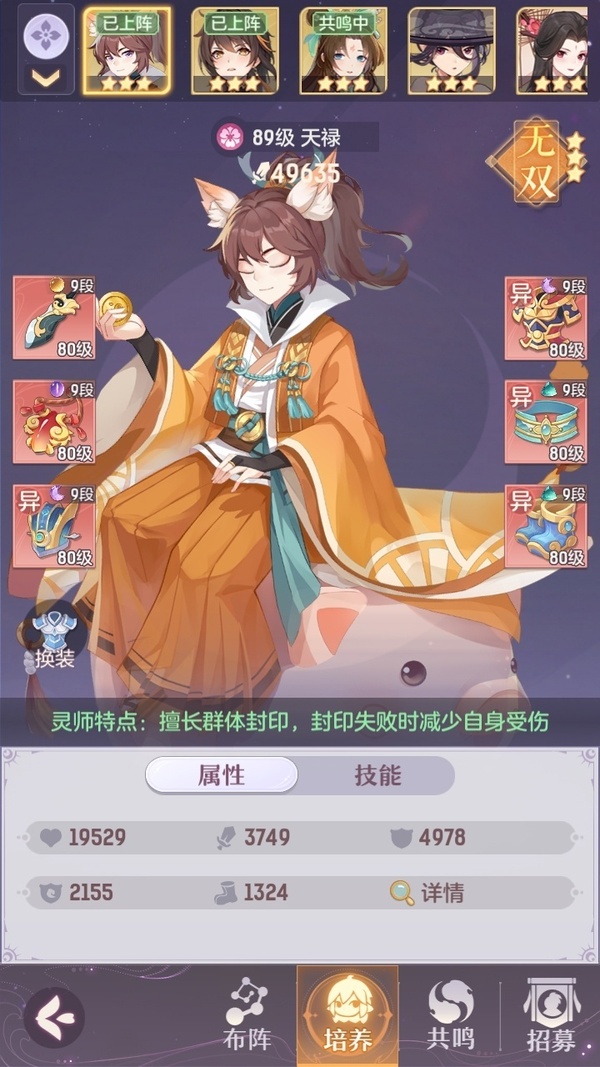 【CHJ96630】 | 颜值:22439 | 等级:89 | 唐门 | 神兽数:8 | 法宝颜色统计:10红0蓝 | 总评分:394258 | 角色评分:88247 | 妖灵评分:206284 | 灵师评分:99727 | 倾天三 | 淬金曜蚀,织梦星海,乘波踏浪,山君现,清寒羽冽,灵鸢一梦,星河揽月,离火苍龙,九春韶华,火树银花,哈?我当武器?,碎梦语情,炙烤大串,一刹雷鸣 | 凤凰游 | 乌蹄·照夜,太一驴,吾皇·萌骑,钱多多,气球派对,灵华引,比翼同舆,万海真君,蕴灵天剑,云心漫游,浪起来,飞起来·壹号,负山海,跃龙门,鸭与云游,飞天笔,飞龙在天,红莲·出尘,兔球,风火乾坤,大荒之主,锦纱丹凤,贯日神君,玄夜星羚,祥云·虹光,花将军,招财进喵,初弦瑶桂,乘风入梦,鼠鼠·星愿巫,狐心入梦,风驰电掣,踏火焚夜,凤蝶·梦浮生,柯冲冲 | 【买号找回永久包赔】