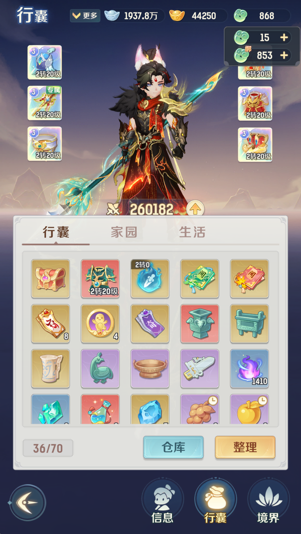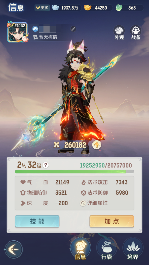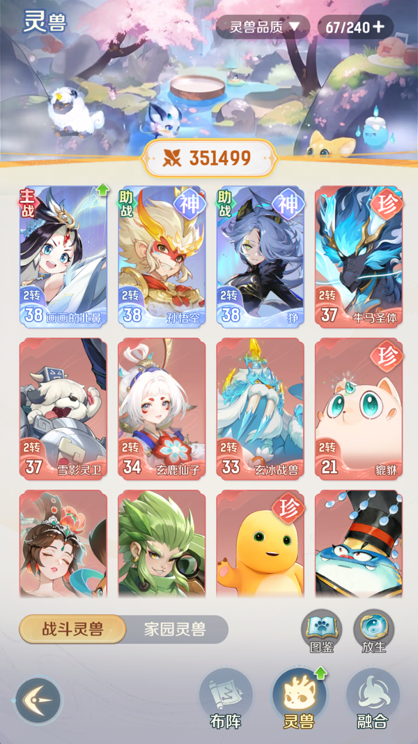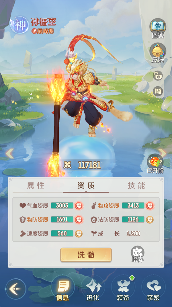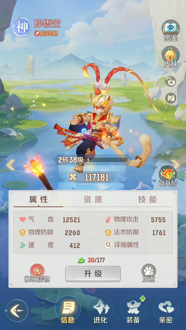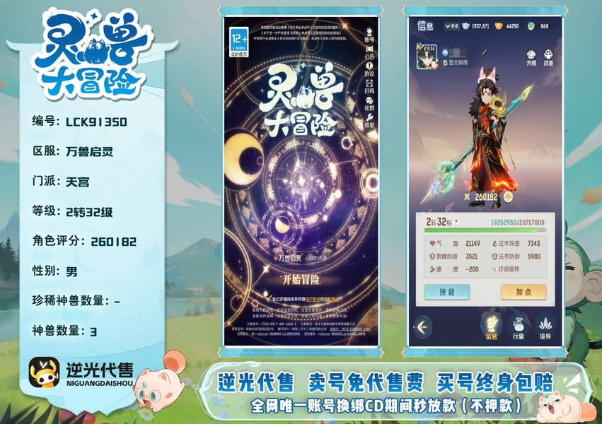 【LCK91350】 | 神兽数量:3 | 仙器:7 | 角色评分:260182 | 珍兽数量:3 | 等级:2转32级 | 天宫 | 男 | 狰,画中仙,孙悟空 | 貔貅,龙马