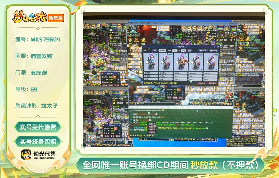 灰驴69级炼药挣钱号天阵容易上手平推组合,1天宫1武装3普陀,长寿封妖变异无压力,带副本积分,90➕60五个号,还有一个摆摊540➕60卖药,这个区炼药的很少,物价很高