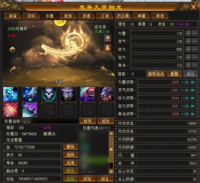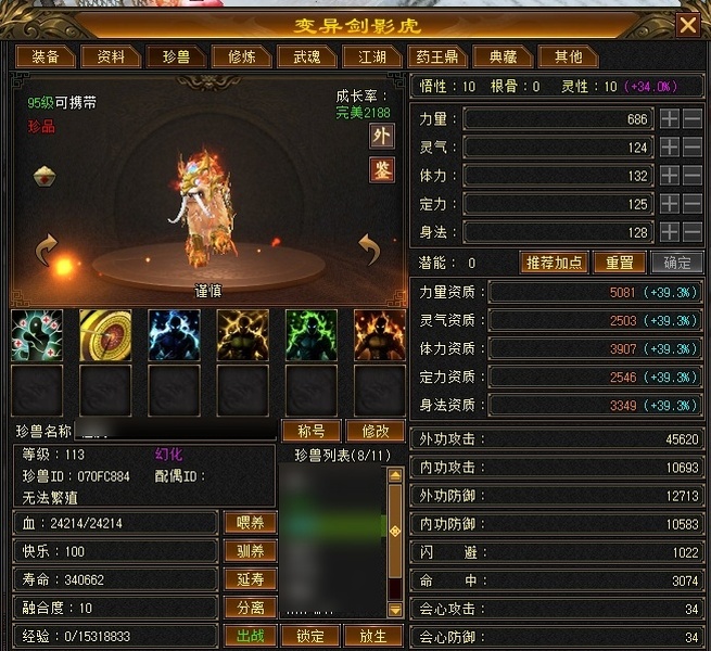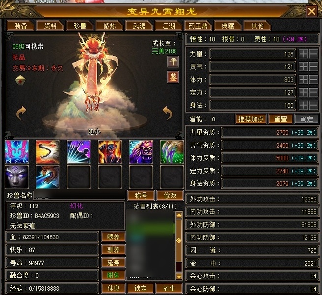 不绑定重楼肩+10万元宝+5万金币+5只双十宠物+8星极品帽子,衣服,四属性饰品。换游戏玩了,值不值看号吧