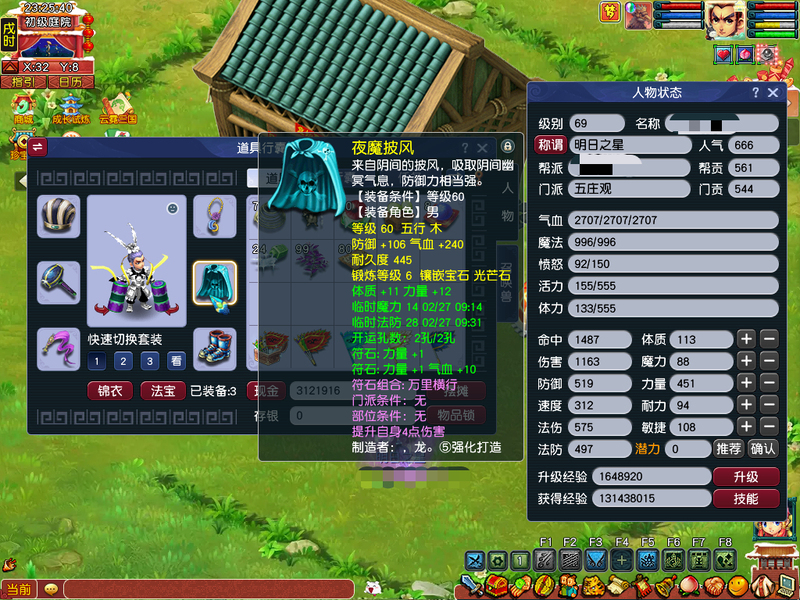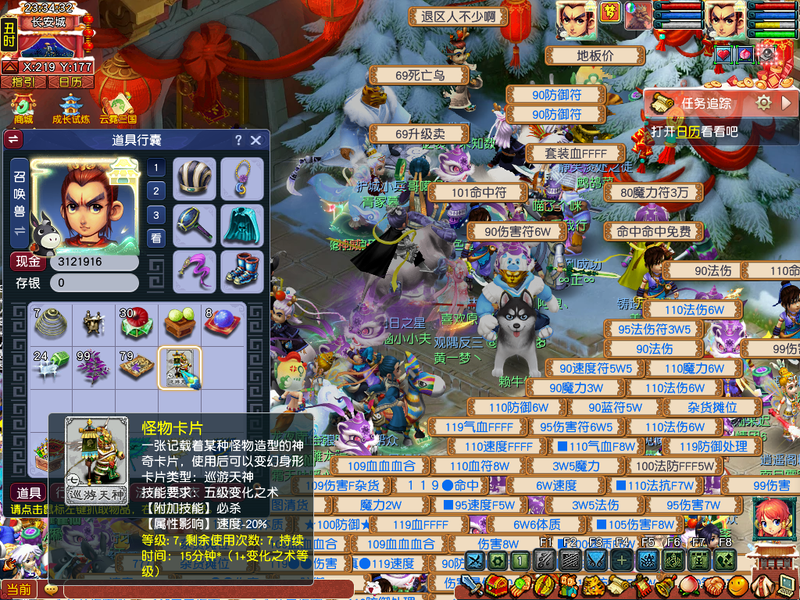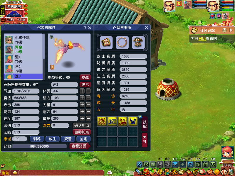 这个号自己一步步升上来的,人修满,宠修29,强身92,带406总伤武器加一套装备全满,带天阵,带三只配速高神凤凰,一攻一法,通刷一切任务,三届满,经验1.3e,上个月拿过榜眼称谓,点卡充了三千以上了,价格实在划算