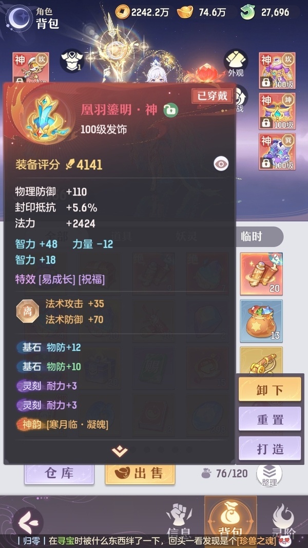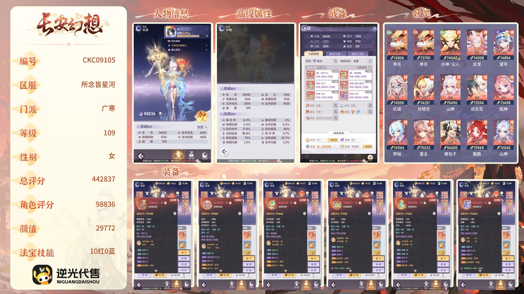 颜值:29772 | 等级:109 | 广寒 | 神兽数:6 | 法宝颜色统计:10红0蓝 | 总评分:442837 | 角色评分:98836 | 妖灵评分:223158 | 灵师评分:120843 | 倾天三 | 淬金曜蚀,织梦星海,乘波踏浪,山君现,清寒羽冽,灵鸢一梦,墨染尘烟,星河揽月,离火苍龙,九春韶华,玉兔月赏,火树银花,太初·云渺,哈?我当武器?,碎梦语情,炙烤大串,一刹雷鸣 | 蝶恋芳菲 | 乌蹄·照夜,祥云,太一驴,吾皇·萌骑,蟹有钳,钱多多,气球派对,灵华引,星昀渡,比翼同舆,万海真君,罗帷七香车,云心漫游,浪起来,飞起来·壹号,负山海,北域霜枭,跃龙门,鸭与云游,喵小萌,飞龙在天,红莲·出尘,定乾坤·承影,兔球,风火乾坤,大荒之主,海月璃梦,贯日神君,玄夜星羚,通明心剑,祥云·虹光,焚天火凤,花将军,招财进喵,初弦瑶桂,乘风入梦,鼠鼠·星愿巫,狐心入梦,风驰电掣,踏火焚夜,凤蝶·梦浮生,逍遥羊,柯冲冲 | 【买号找回永久包赔】