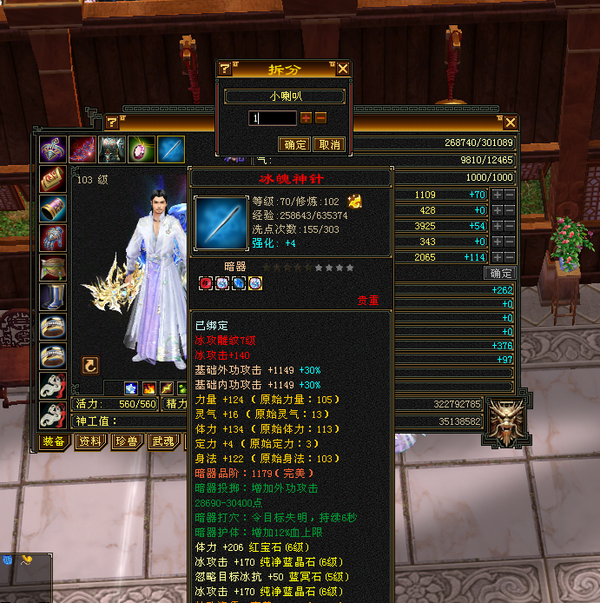 【TWR23655】 | 天山 | 等级:103 | 主属性:4624 | 副属性:1100 | 男 | 主冰攻 | VIP5