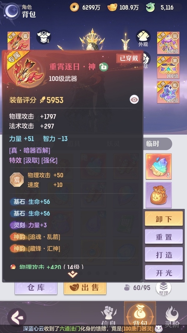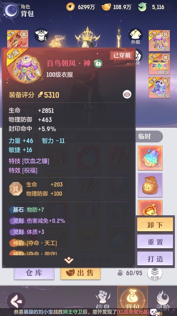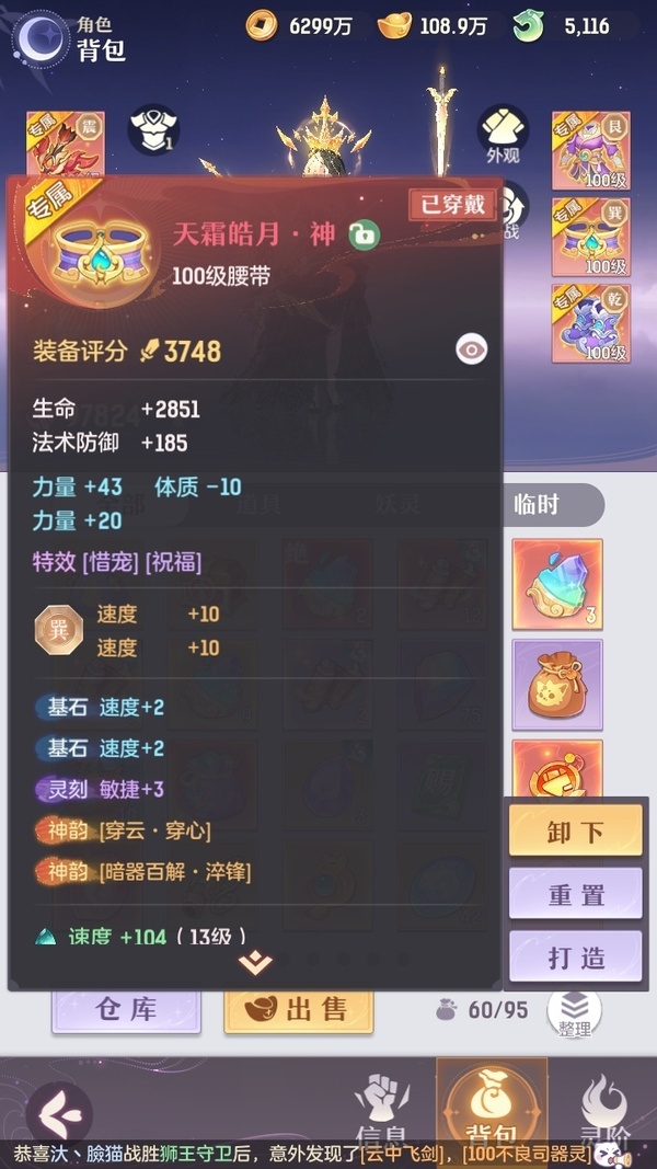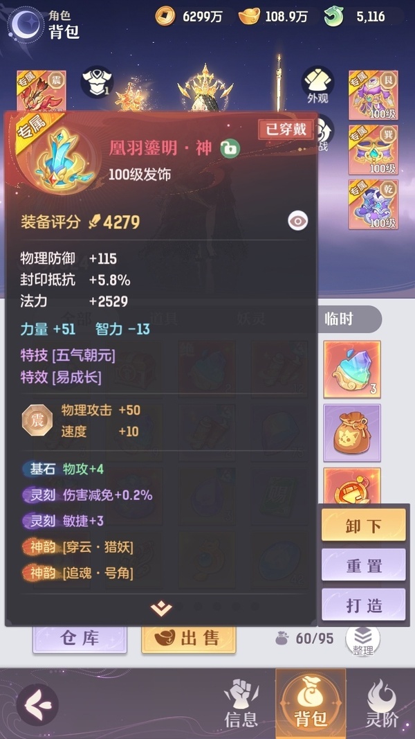 【CDO79657】 | 颜值:14380 | 等级:109 | 唐门 | 神兽数:1 | 法宝颜色统计:8红1蓝 | 总评分:438023 | 角色评分:97824 | 妖灵评分:222023 | 灵师评分:118176 | 倾天三 | 九春韶华,玉兔月赏,淬金曜蚀,山君现,哈?我当武器?,清寒羽冽,碎梦语情,炙烤大串,一刹雷鸣,墨染尘烟 | 红莲·出尘,兔球,风火乾坤,太一驴,钱多多,气球派对,灵华引,万海真君,焚天火凤,花将军,蕴灵天剑,招财进喵,风驰电掣,踏火焚夜,凤蝶·梦浮生,跃龙门,鸭与云游 | 【买号找回永久包赔】