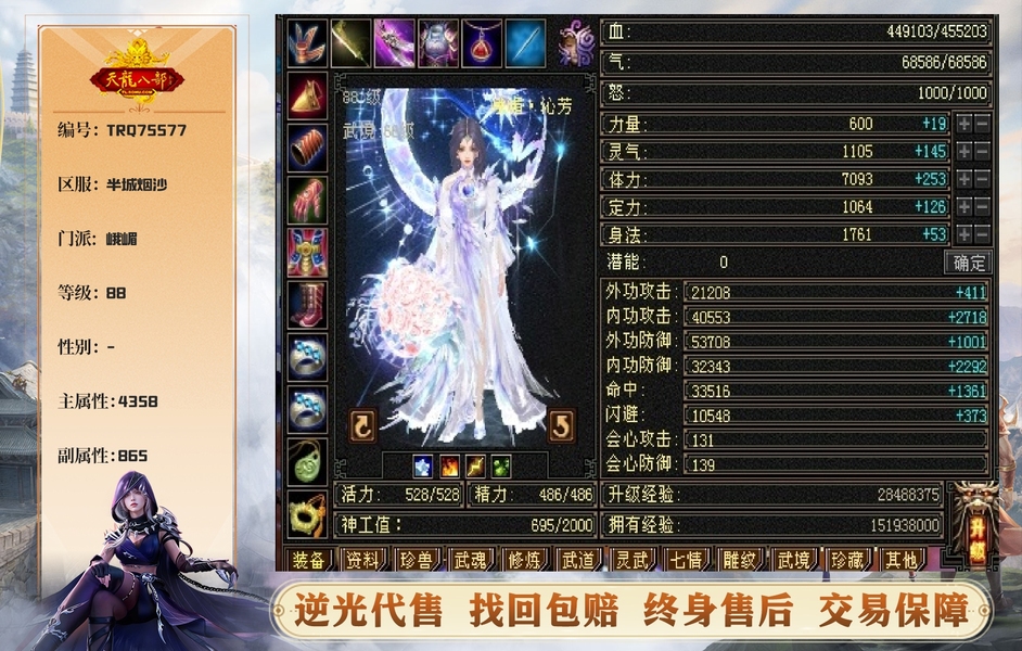 【丸子推荐】45万血 1100+冰抗 4300+玄攻 带4个双10宝宝 一身极品8星装备 8体老雕5新雕 5神6荒 90件时装 21个幻视 雪猿/赤兔 2个永久坐骑 玉食客9级 生活技能拉满 能抗能打 漂亮大峨嵋,不接大刀。