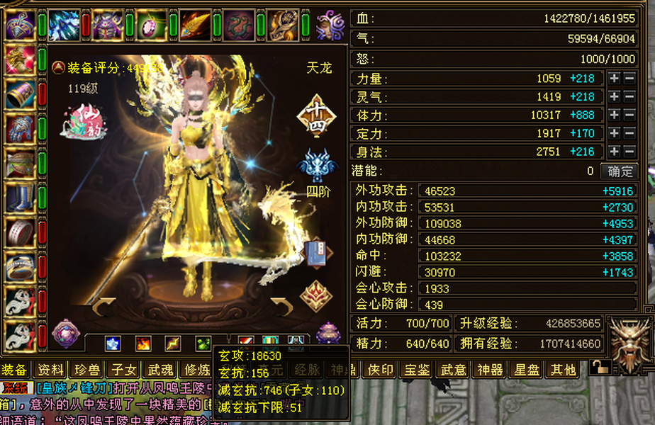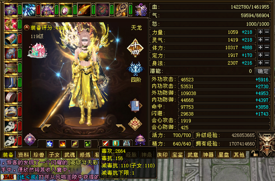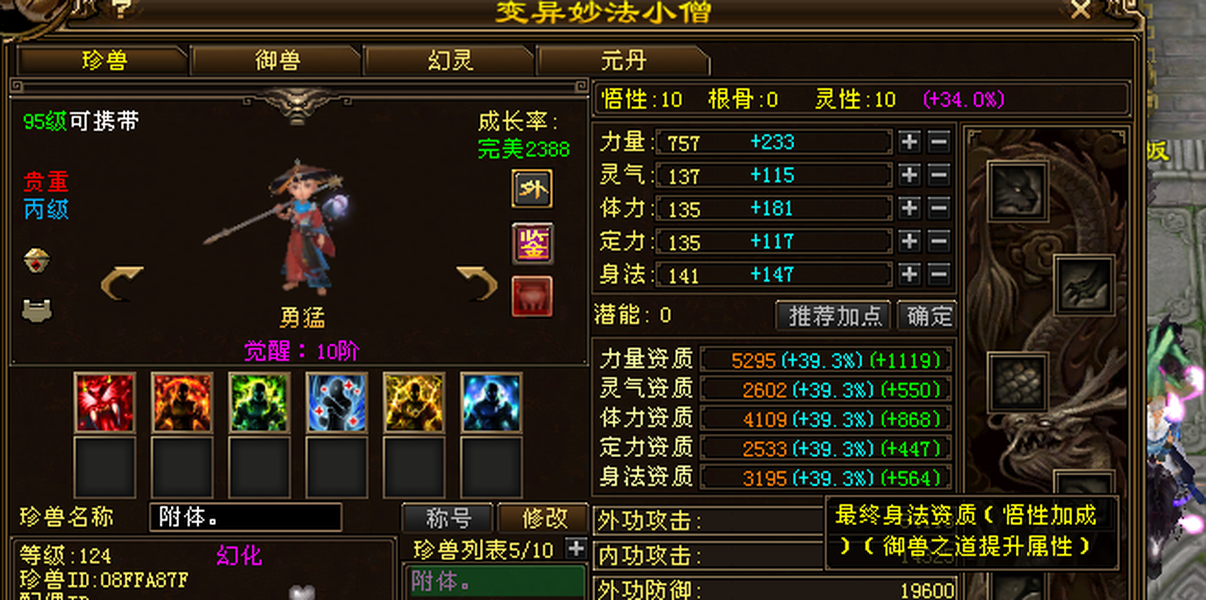 金甲女天龙,加状态2万1属性,带永久坐骑,百晓V9