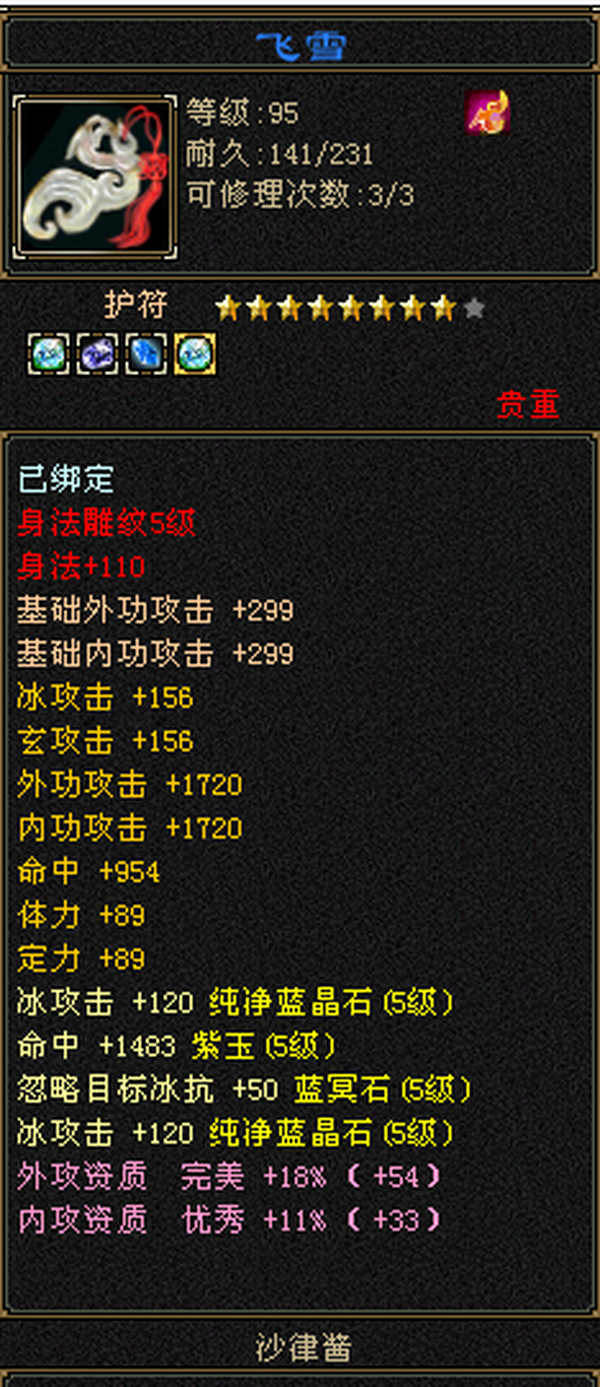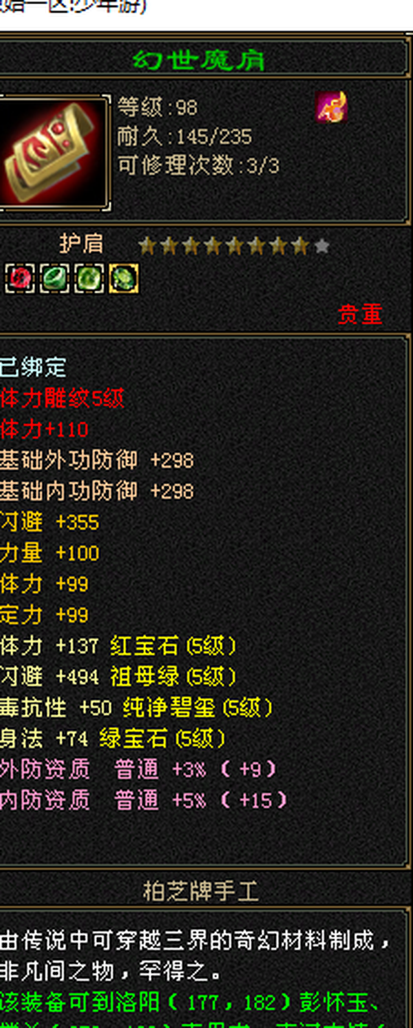 真正得5减天山!喜欢花点小钱打造得老板来!带金乌!夜雨听竹!稍微收点全属7星装备 面板都是不小的提升 减抗450! 带个3级幻世 听香带个5级少林 高减抗