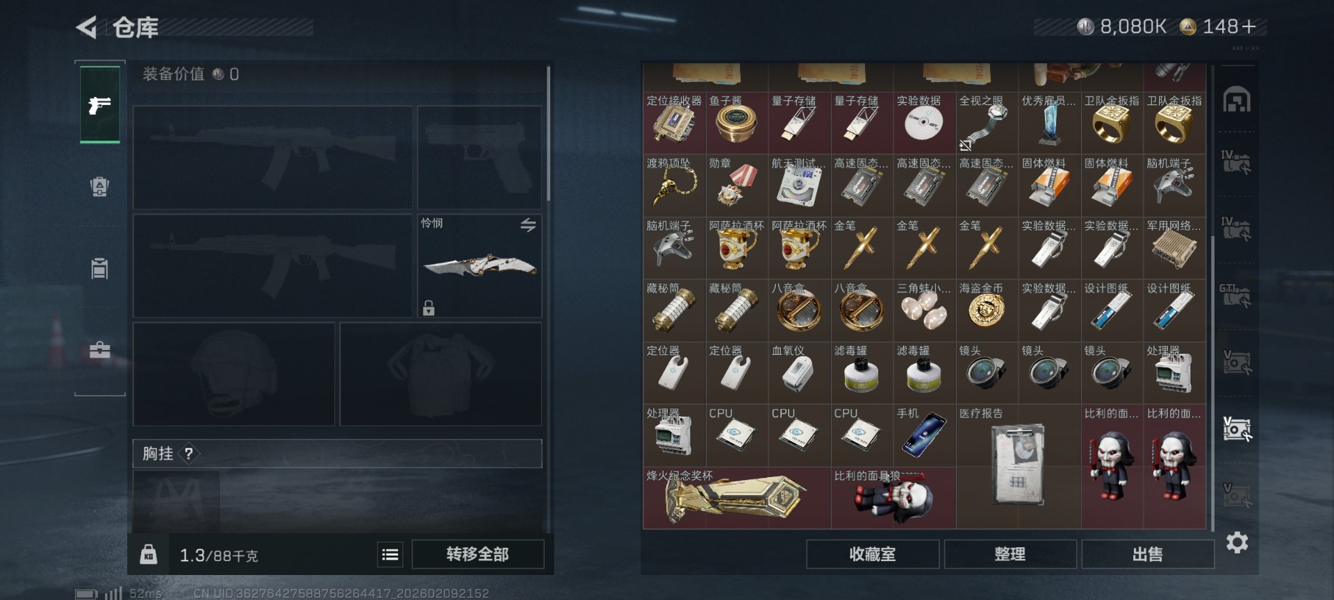[]总资产:361.2M 2干员外观 3近战传说 26传说枪械 哈夫币:8.080K 顶级安全箱(3×3)4.11号到期 不可修改实名 【烽火地带段位】钻石 【全面战场段位】列兵 【干员外观】骇爪-维什戴尔,露娜-金牌射手(S7) 【传说武器皮肤】近战-电锯惊魂,近战-信条,近