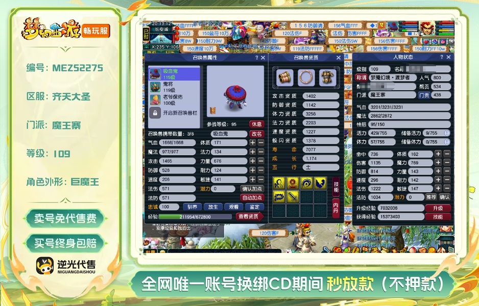 齐天大圣,一手号没时间玩,希望下一家玩家好好玩,可以直接上手了,装备也可以不用换了