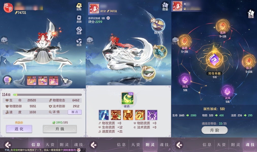 颜值:27262 | 等级:109 | 古灵 | 神兽数:6 | 法宝颜色统计:10红0蓝 | 总评分:445390 | 角色评分:100535 | 妖灵评分:225214 | 灵师评分:119641 | 倾天三 | 淬金曜蚀,织梦星海,乘波踏浪,山君现,清寒羽冽,灵鸢一梦,墨染尘烟,星河揽月,离火苍龙,九春韶华,玉兔月赏,火树银花,哈?我当武器?,碎梦语情,炙烤大串,一刹雷鸣 | 蝶恋芳菲 | 乌蹄·照夜,太一驴,嘟嘟雪橇,吾皇·萌骑,蟹有钳,钱多多,气球派对,七彩灵鲲,灵华引,星昀渡,比翼同舆,万海真君,罗帷七香车,蕴灵天剑,云心漫游,浪起来,飞起来·壹号,负山海,北域霜枭,跃龙门,鸭与云游,喵小萌,飞天笔,飞龙在天,红莲·出尘,兔球,风火乾坤,大荒之主,海月璃梦,贯日神君,玄夜星羚,祥云·虹光,焚天火凤,花将军,招财进喵,初弦瑶桂,乘风入梦,狐心入梦,风驰电掣,踏火焚夜,凤蝶·梦浮生,逍遥羊,柯冲冲 | 【买号找回永久包赔】