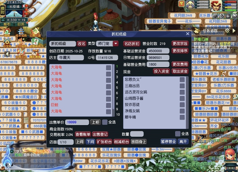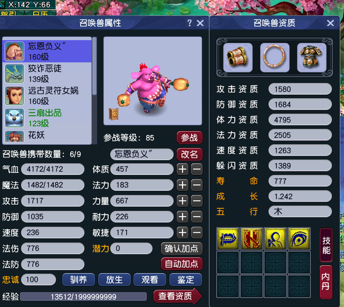 建业城155狮驼猎术14带10间低级宠物店,有天阵虎阵乌阵,人物攻修25防修21法抗24,乾元丹满,带变身套宝宝出售,紫气东来民房,总经验 30 亿 过年的时候逆光平台买的,年后有事要工作了赔钱出了