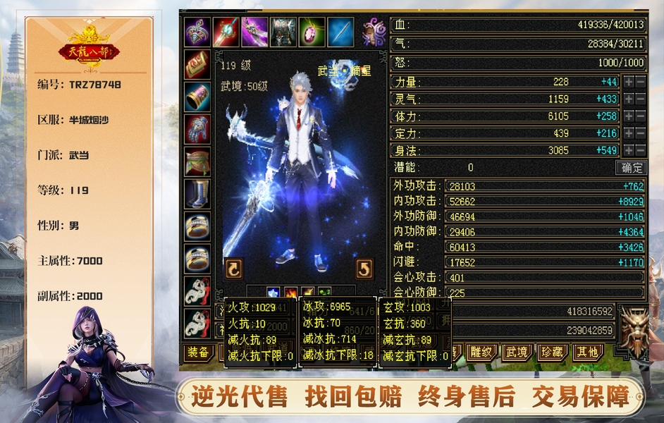 满6带7无敌丹精品武当,附体和PK宝宝都带,上手就能玩,不需要任何充值打造,退游出,能小刀联系唐城159