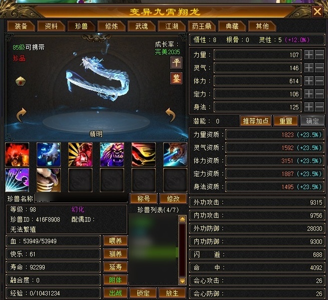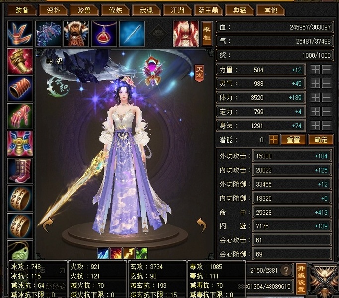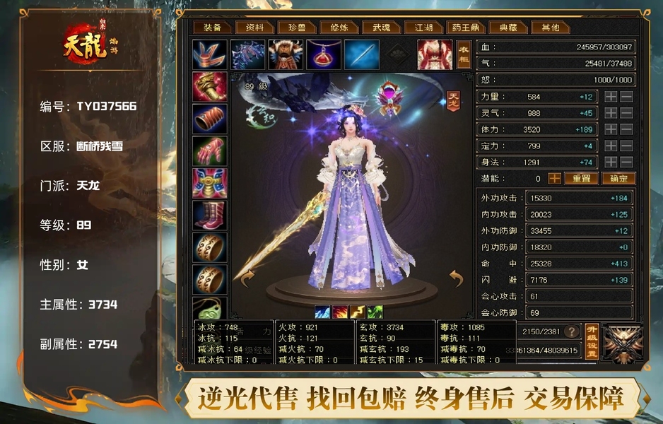 天龙 | 等级:89 | 主属性:3734 | 副属性:2754 | 女 | 主玄攻