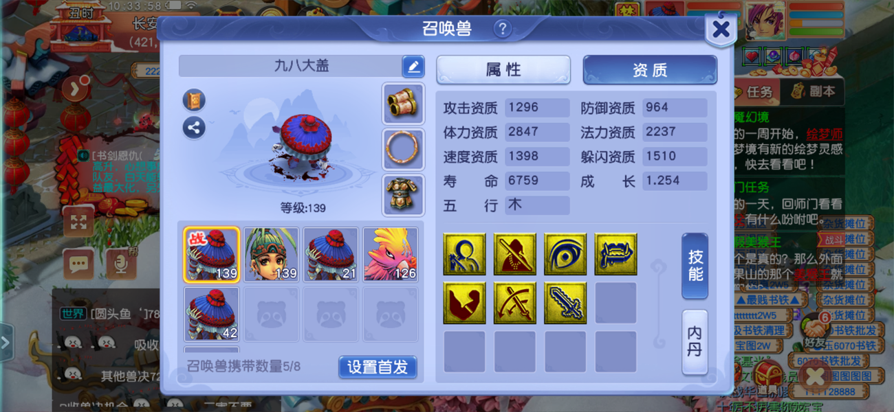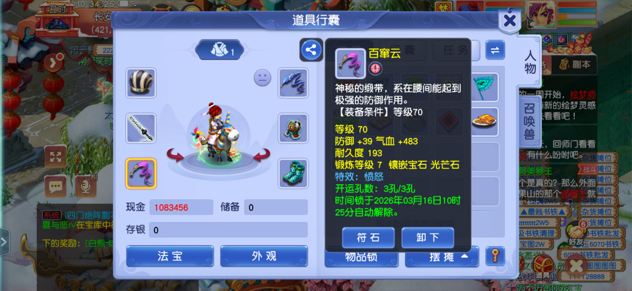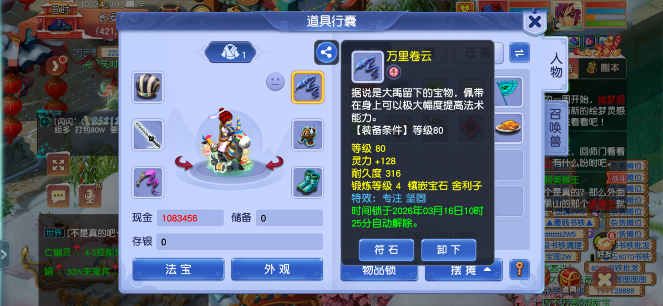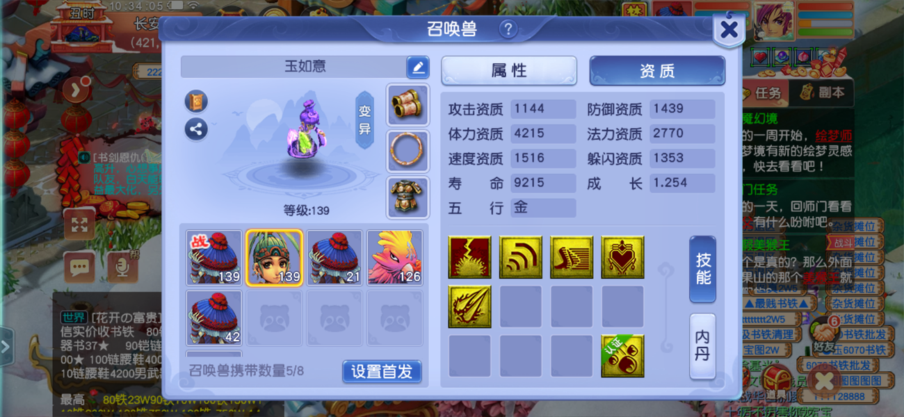 两套属性,藏宝阁买的还没到上架期不想玩了,装备宝宝齐全。带法系蝴蝶套装。