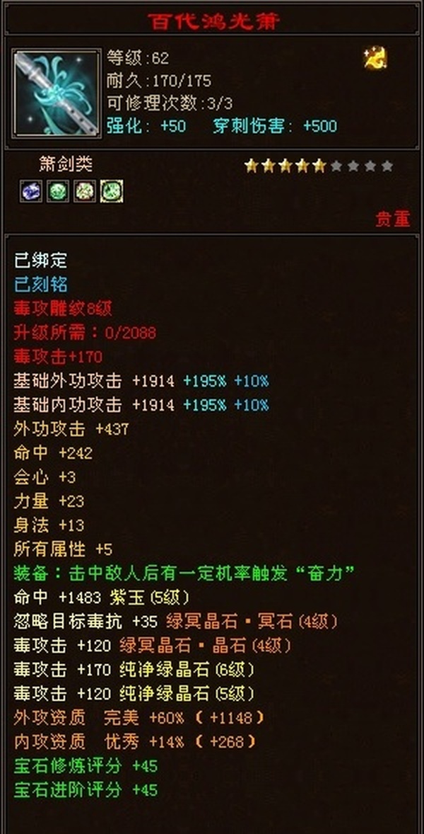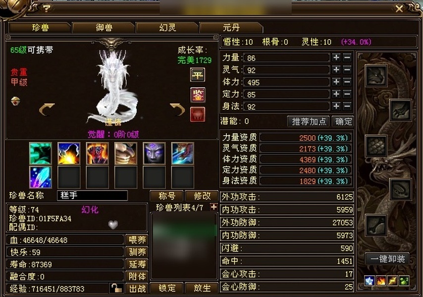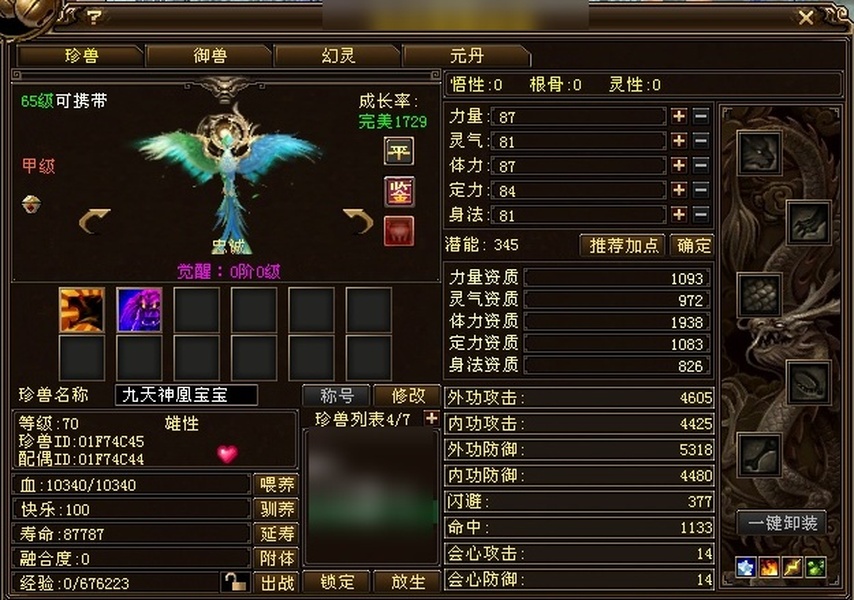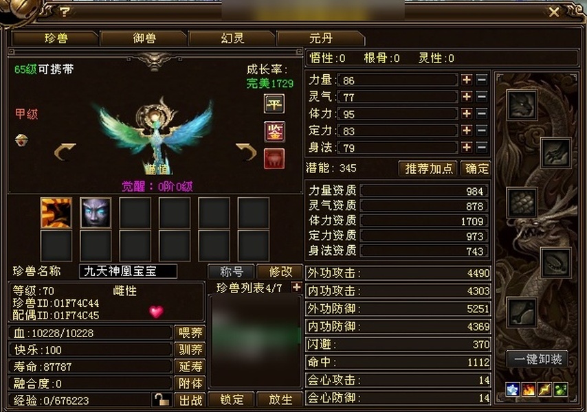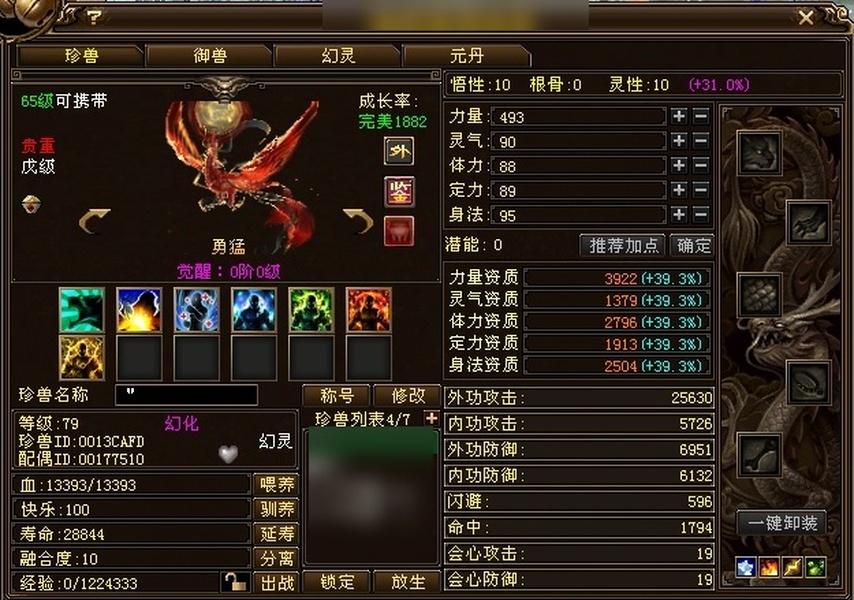 开个血阵35万血,穿刺3400,抗死所有4.4 吃药1150火炕 仓库有2个5级属性石头可以自己换