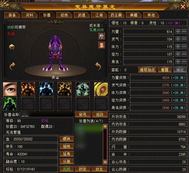 精品武当大完美武魂6带满5成品附体攻击宝宝资质高