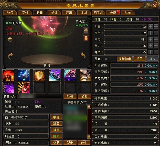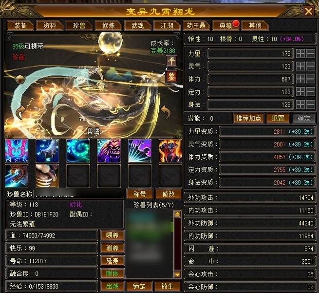 极品减抗500逍遥,带四只极品双十宝宝。三天雕。面板裸属性。