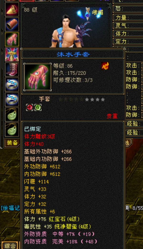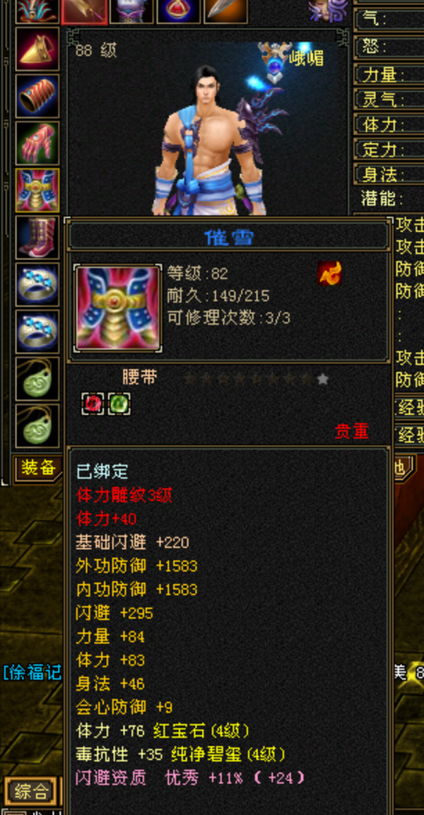 十三叔推荐/卡88 极品毕业八星腰带 半身毕业防具 没截图的装备就是没上石头跟雕文都需要换的 号内还有元宝仓库材料一起出