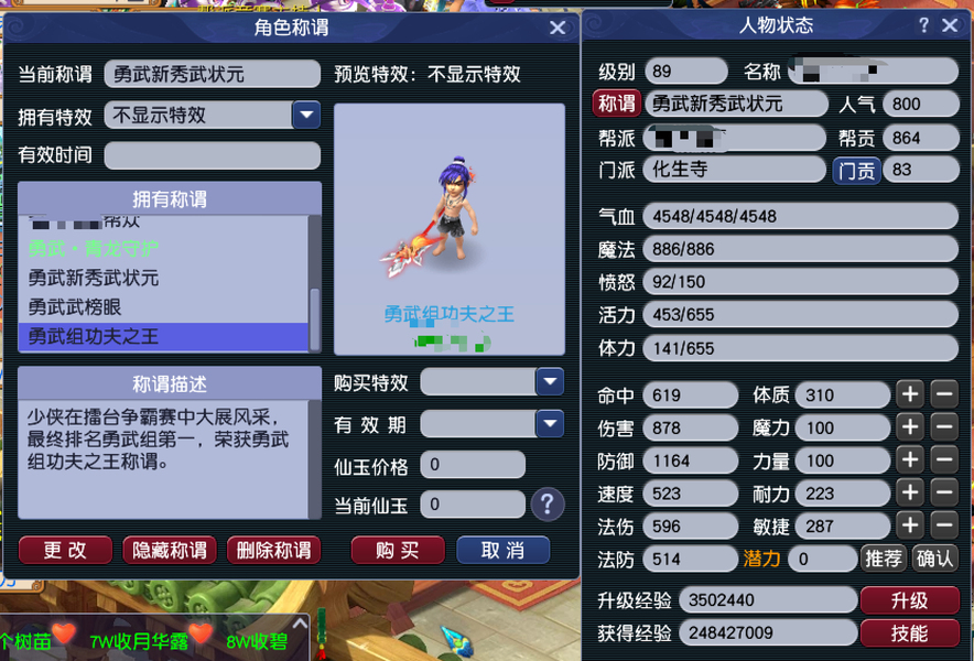 89第一化生,全套极品装备,法宝全满,幻彩驴,浮生绡光膀子,方天画戟,性价比极高!