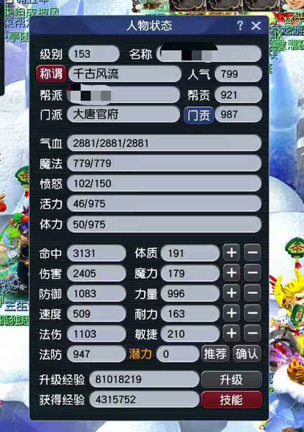 飞升女大唐,4位靓号id,跑跑人环就155了,超级绿通,杀气决套,帮贡一万,新春时装拉满,通刷一切,配合后续藏宝阁