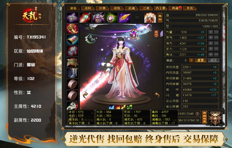 【TXI95341】 | 星宿 | 等级:102 | 主属性:4210 | 副属性:2200 | 女 | 主毒攻