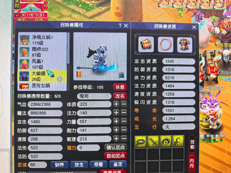 带组鬼将,有宝宝装备和内丹,带组耐卡,带组飞行坐骑,装备齐全,全部通杀
