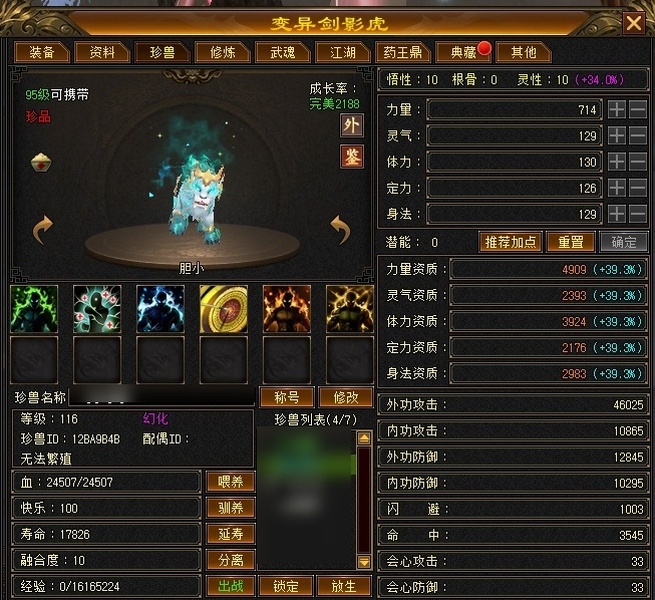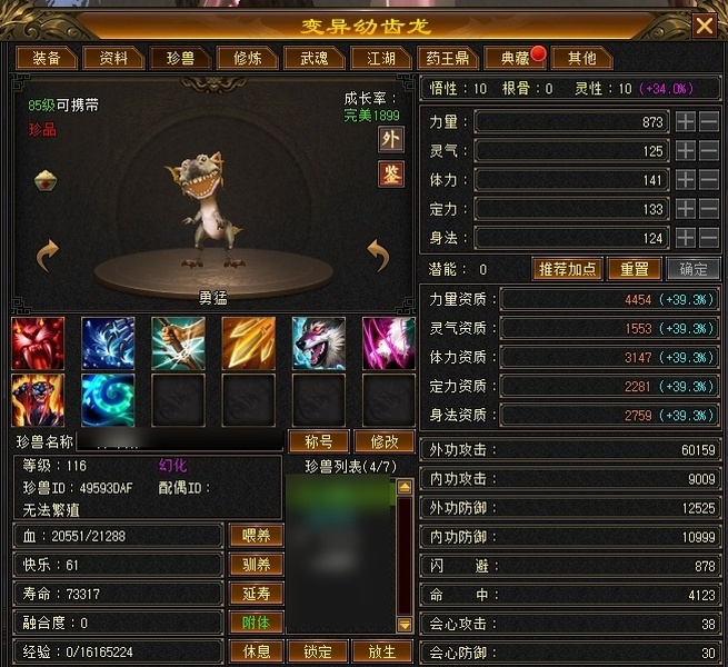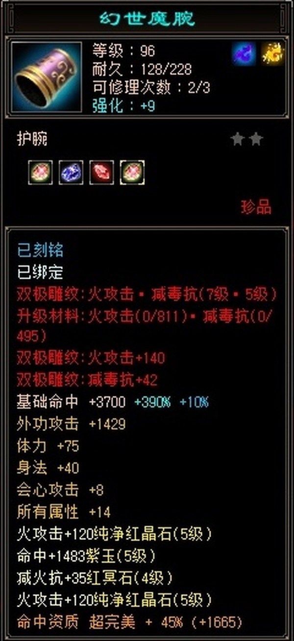 附体全四技能+一千属性价值1500 精品四修 总属性七千+ 打人一万伤害