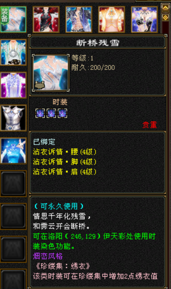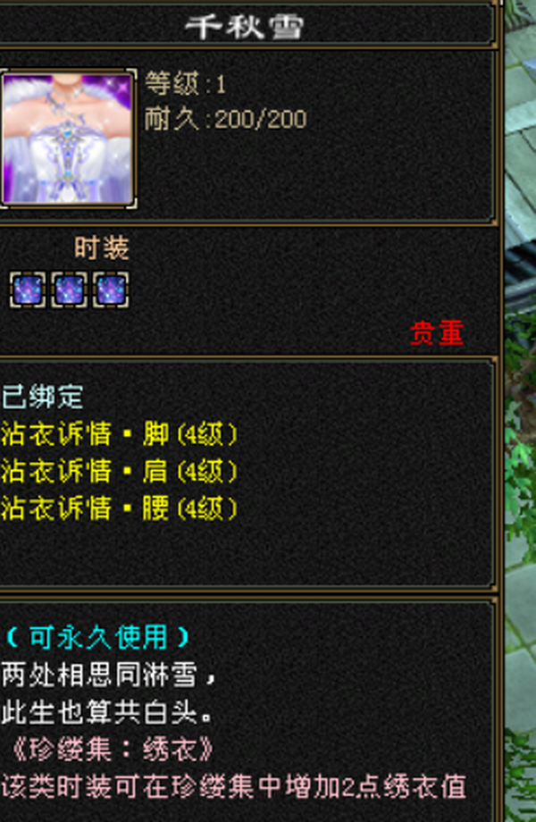 极品骨翼漂亮峨眉,14颗四级配饰,其它3级,垂云翼、断桥衣服,4500附体体力 另带少年游45属体88天山、星月物语稀有时装 不还价勿扰
