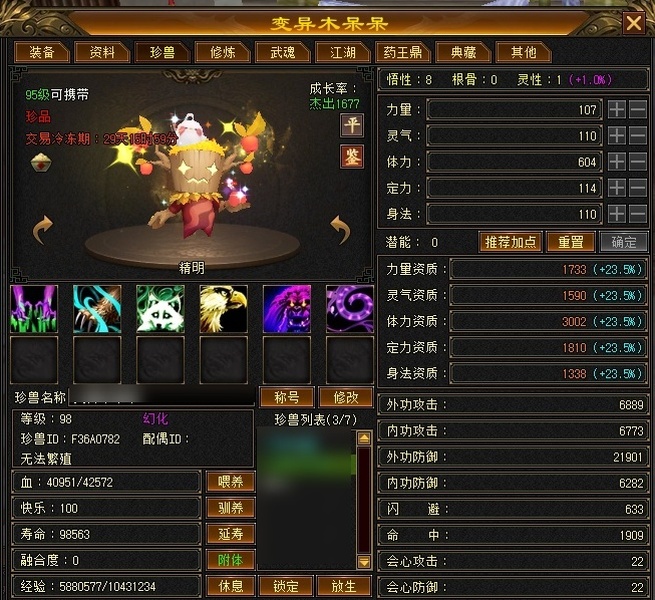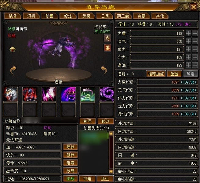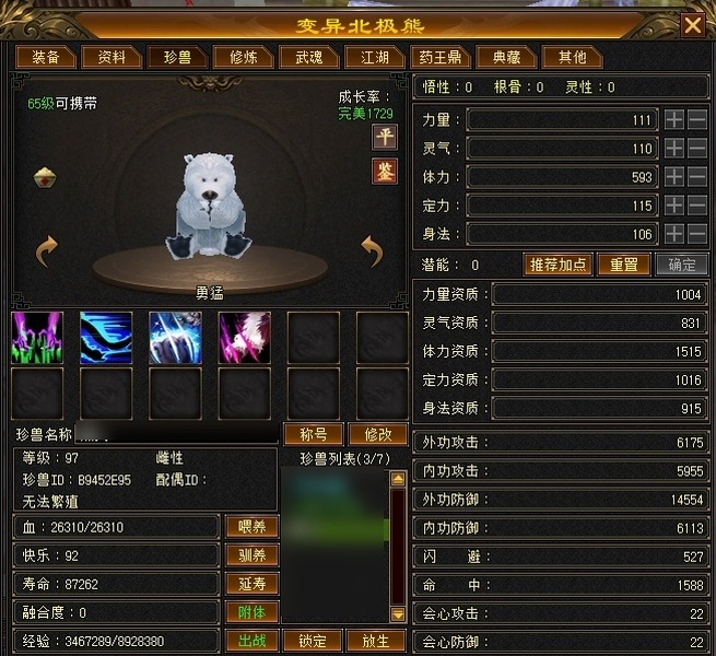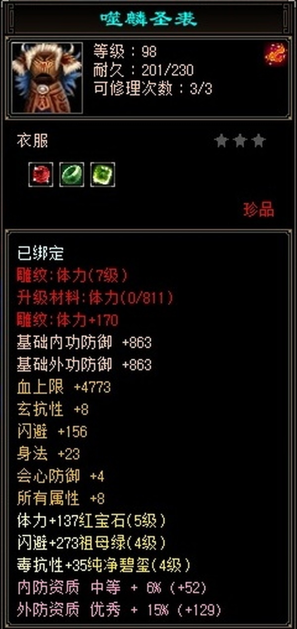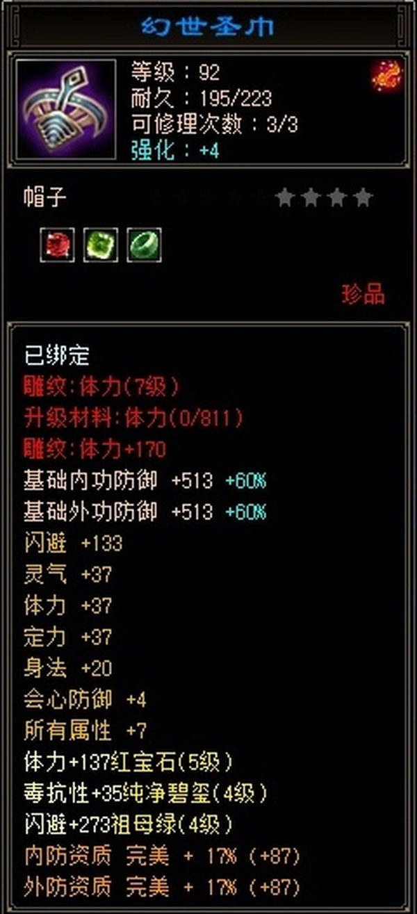 19颗5级宝石10颗5级属性石头,雕文全部7级,带30宝宝龙,一个群技能书,还有很大提升
