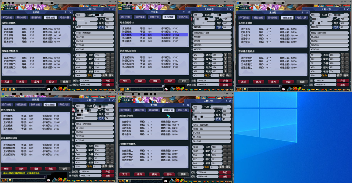 109一组五开,4普陀法修8,防修1,五庄,攻修7,防修6,一组瑞兽一组高必马面,价格实惠
