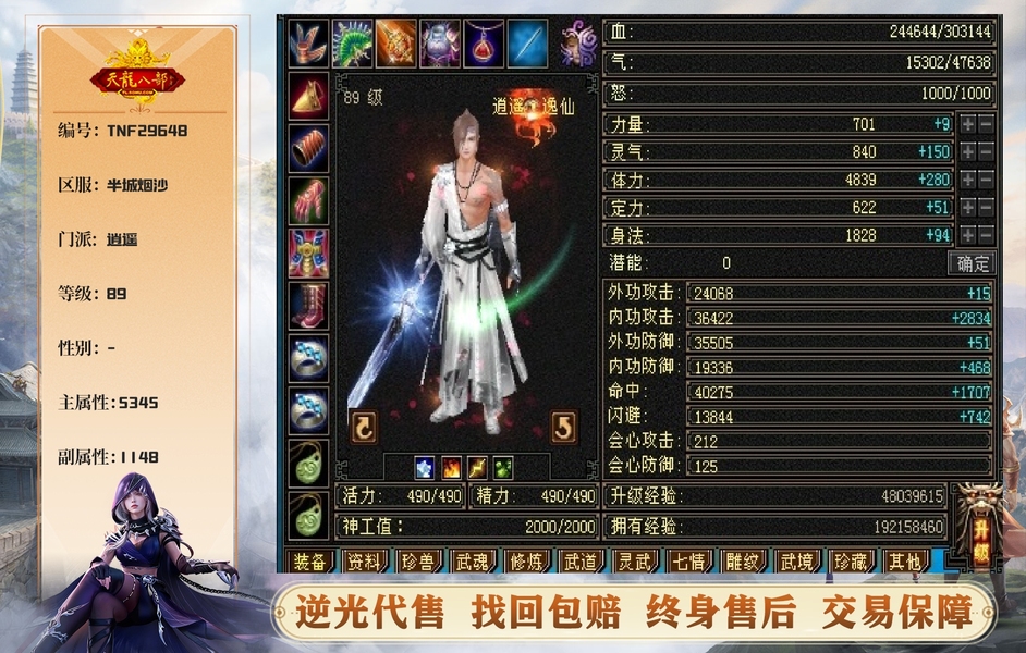 纯5号,双神绘色,带宝宝出,满7雕,带6级石头,仓库还有8颗超级玉,随便白嫖下新雕文到5600,3修逍遥,带私人客服,特价,5荒马上6,4神