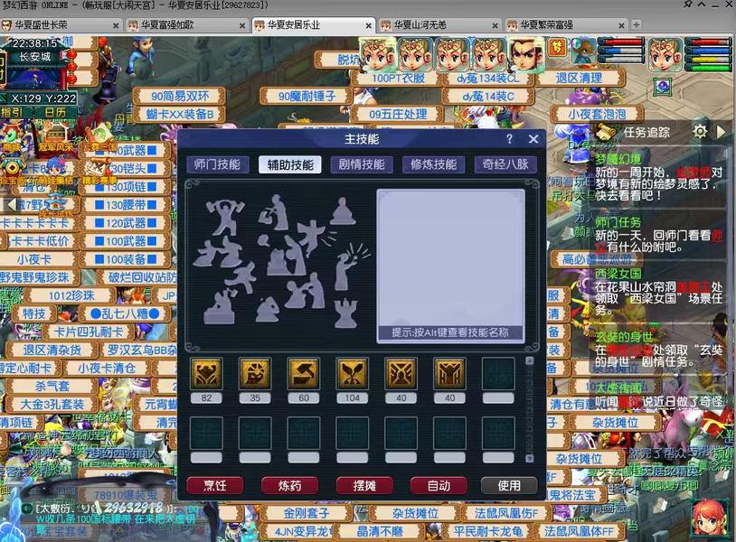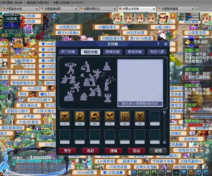 一组130级1五庄4普陀,带天阵,4只全红老鼠,有飞行,帮贡9000左右,随时可点修和辅修技能,强身80左右,炼药100➕,普陀都有3孔,五庄1件3孔,上手即玩。上班没时间,低价甩。