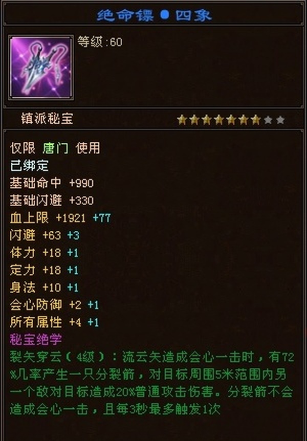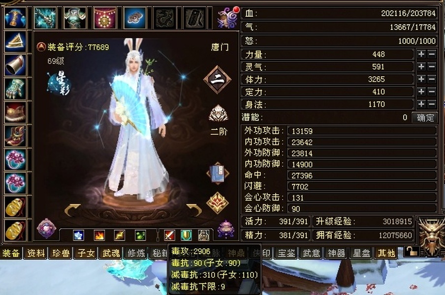 唐门 | 等级:69 | 主属性:2906 | 男 | 评分:78724 | 副属性:1554 | 穿刺伤害:2320 | 穿刺减免:144 | VIP7 | 【买号找回永久包赔】