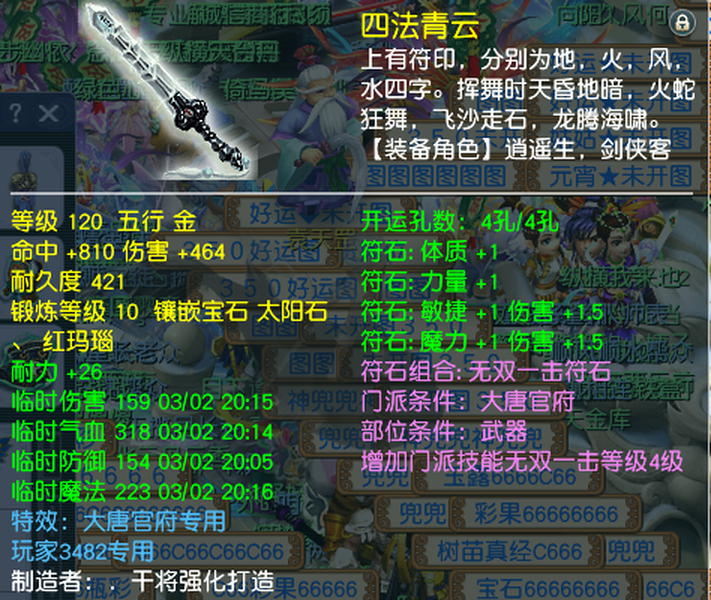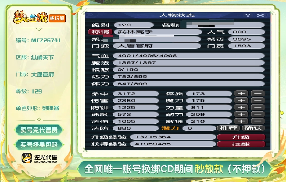 129飞升DT爆炸人物属性,人物基本满修,宠修很高,1套任务满锻杀气套,1套120级满锻PK装备,高伤120武器,120衣服双4孔(任务溅射+PK十方无敌)2套符石组合,120暴怒腰带,法宝全部齐全几乎满层(自己看图),一只全红隐攻BB,一只全红法BB,一只配速BB,内丹基本都是吃满的,仓库里还很多东西全部送了,时装有2只鲲+光膀子(染色),其余时装装饰啥的商城里面有很多,130级一万多熟练度打造(活力满了摆摊咔咔赚米),97 级炼药,春节三国抽奖已经抽了一部分了(请看图),过完年了要忙工作了,没时间玩了低价出了,心血号望善待,谢谢!