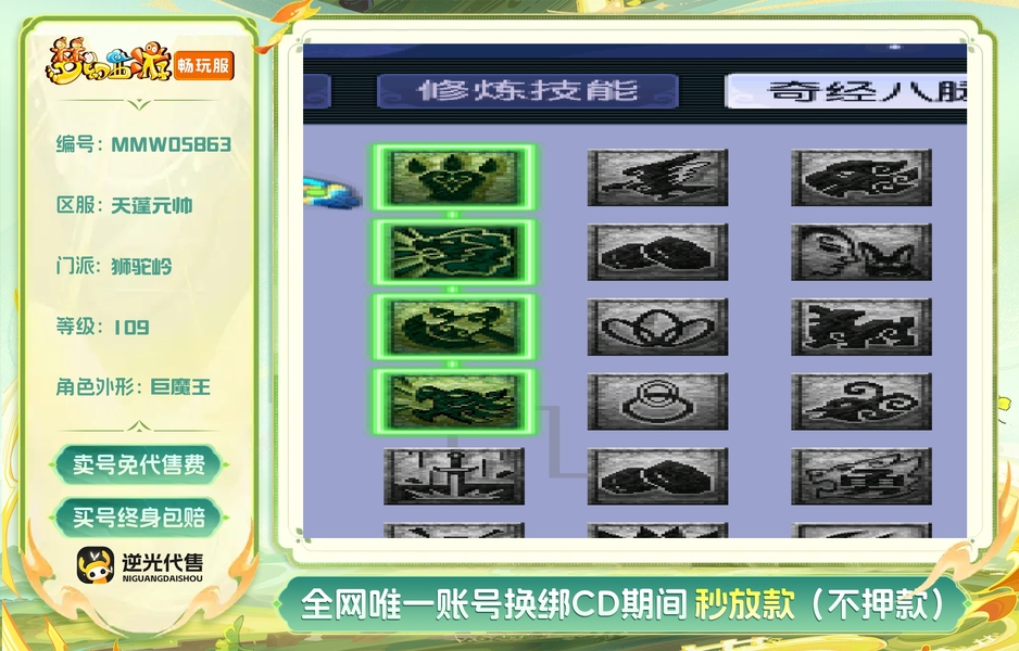 任务狮驼,带天阵,带4位数靓号,宝宝攻修17
