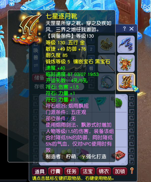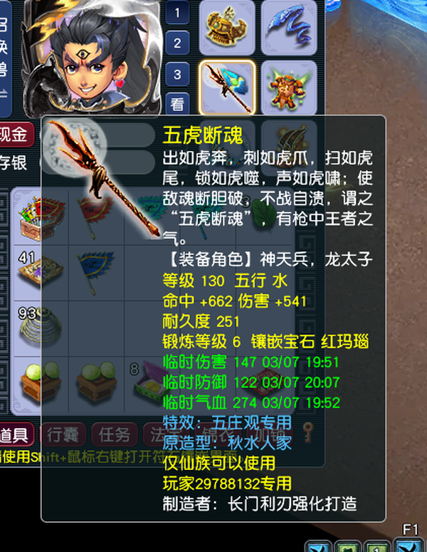 战骑,方天画戟,特效,排面拉满。130装备拉满,有法宝有宝石有装备,修就差帮贡,已经跑到3000帮贡了,再跑一天就能点满25。帮里紫菜随便用,紫气带150家具的豪宅,宝宝卖完了。同价位无敌 欧皇号,出了几次140腰带书了,有一手联系