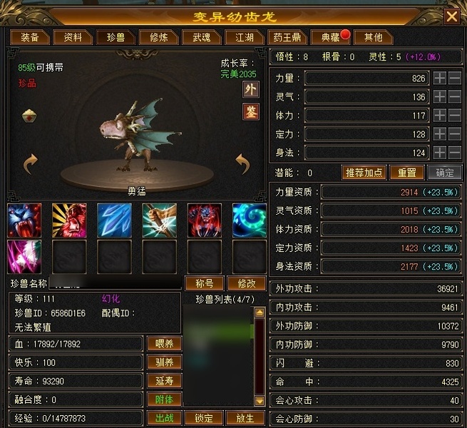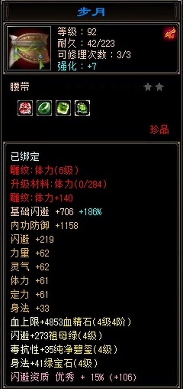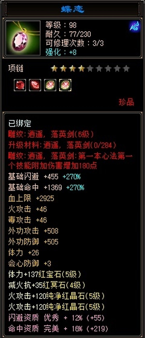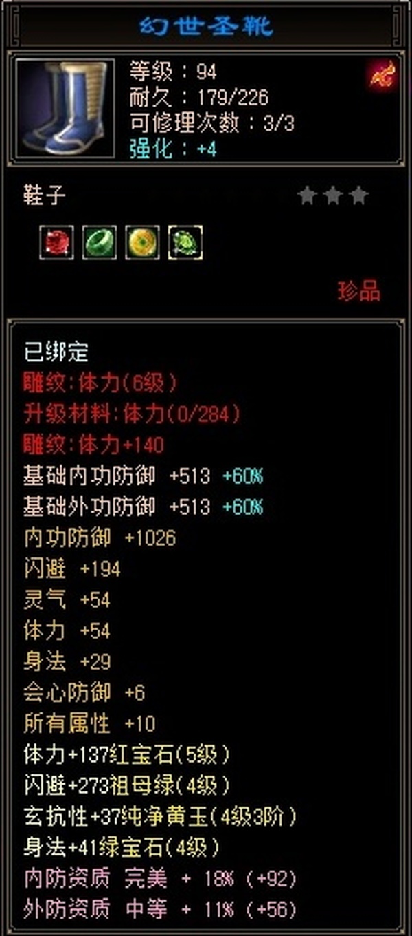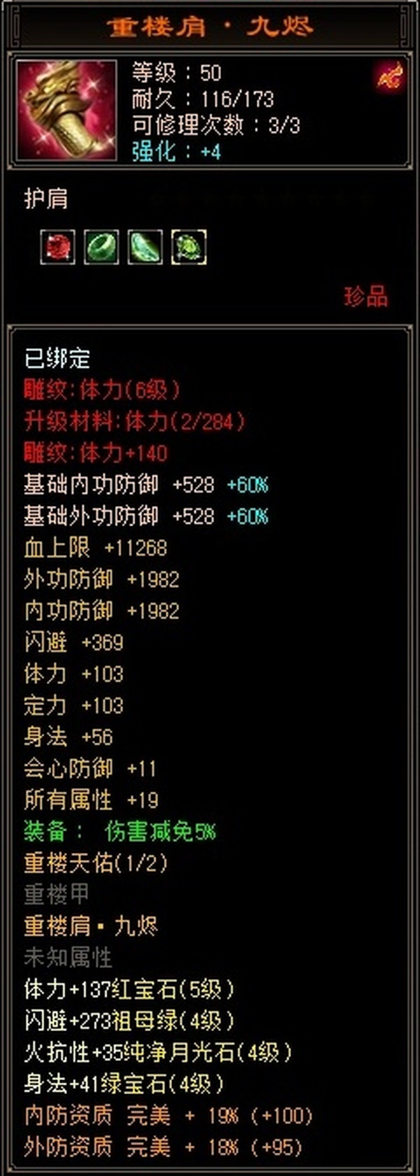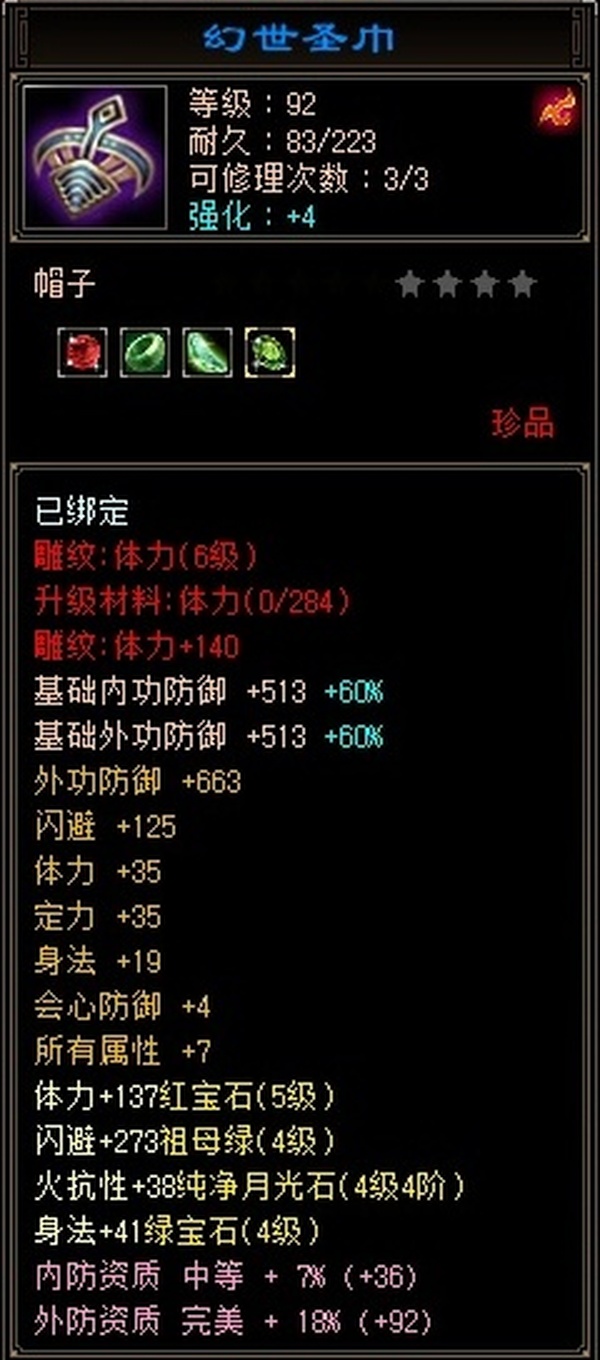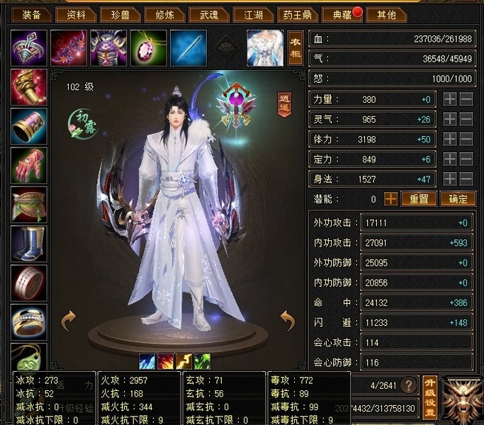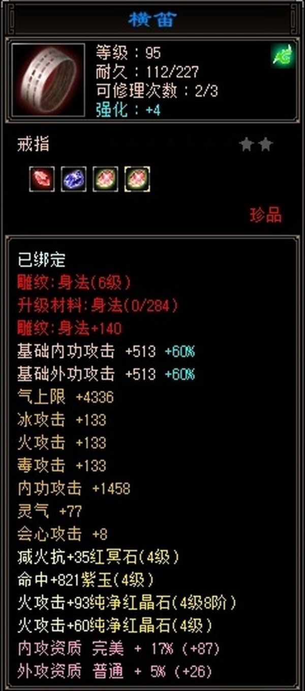 全部4级减抗:火减抗344,毒减99, 裸火属性2957,毒属性772,26w血量, 所有装备四孔全开, 雕文全齐 到手直接玩