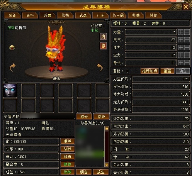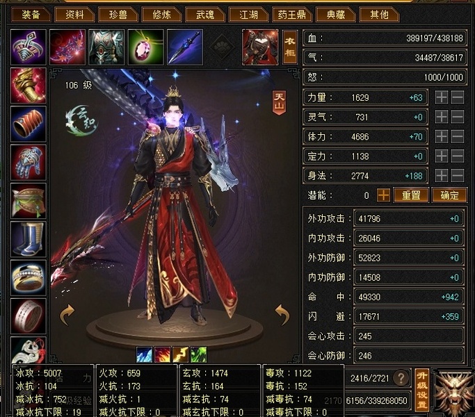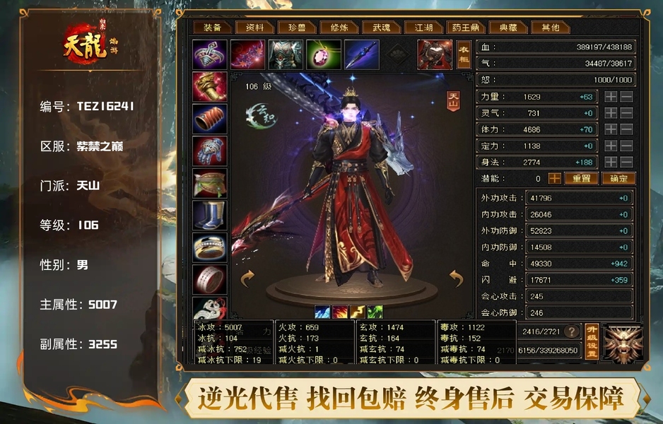 细节极品三修暴力天山,5000属性43W血5W命中带3只4900极品宝宝,1W7金币6W元宝支持小刀